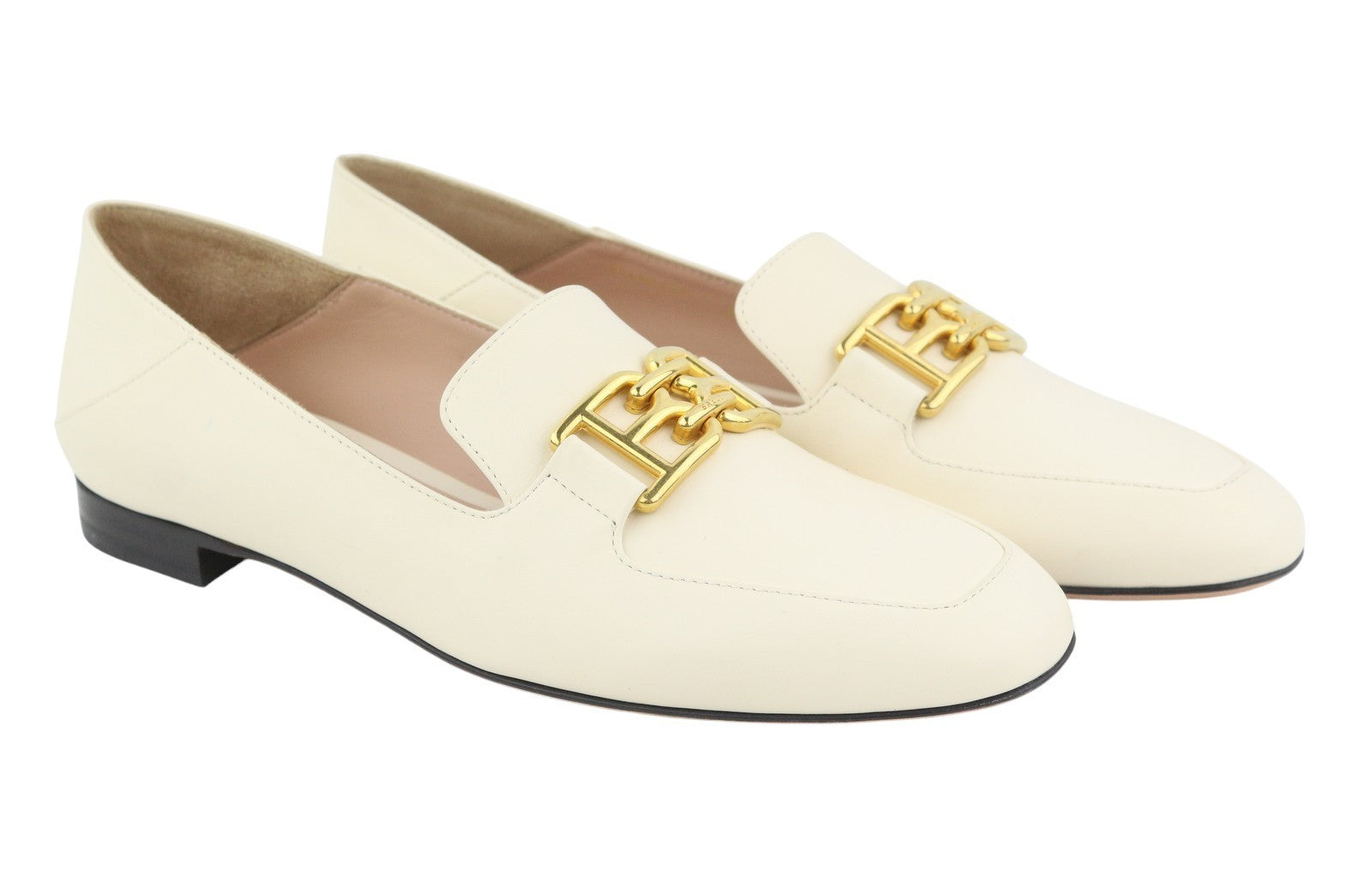 BALLY Ellah Women Flats EU36.5 Milky Leather Gold Tone Details Loafers RRP699