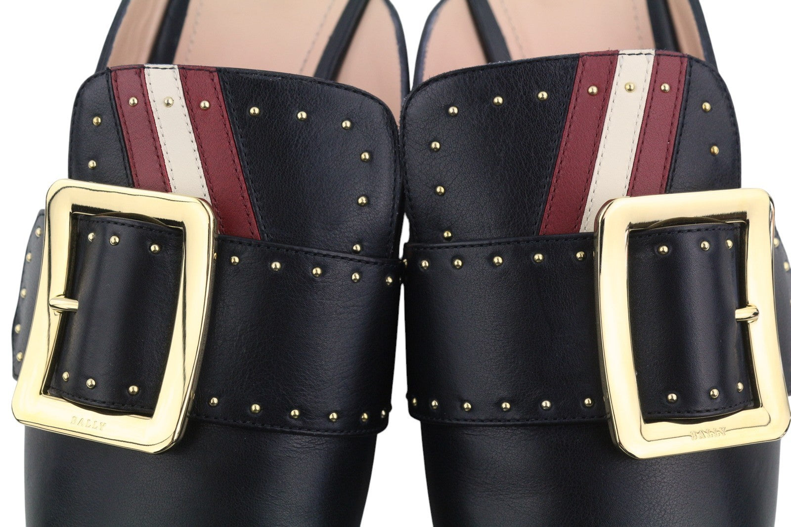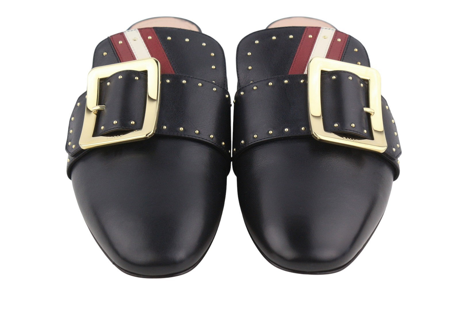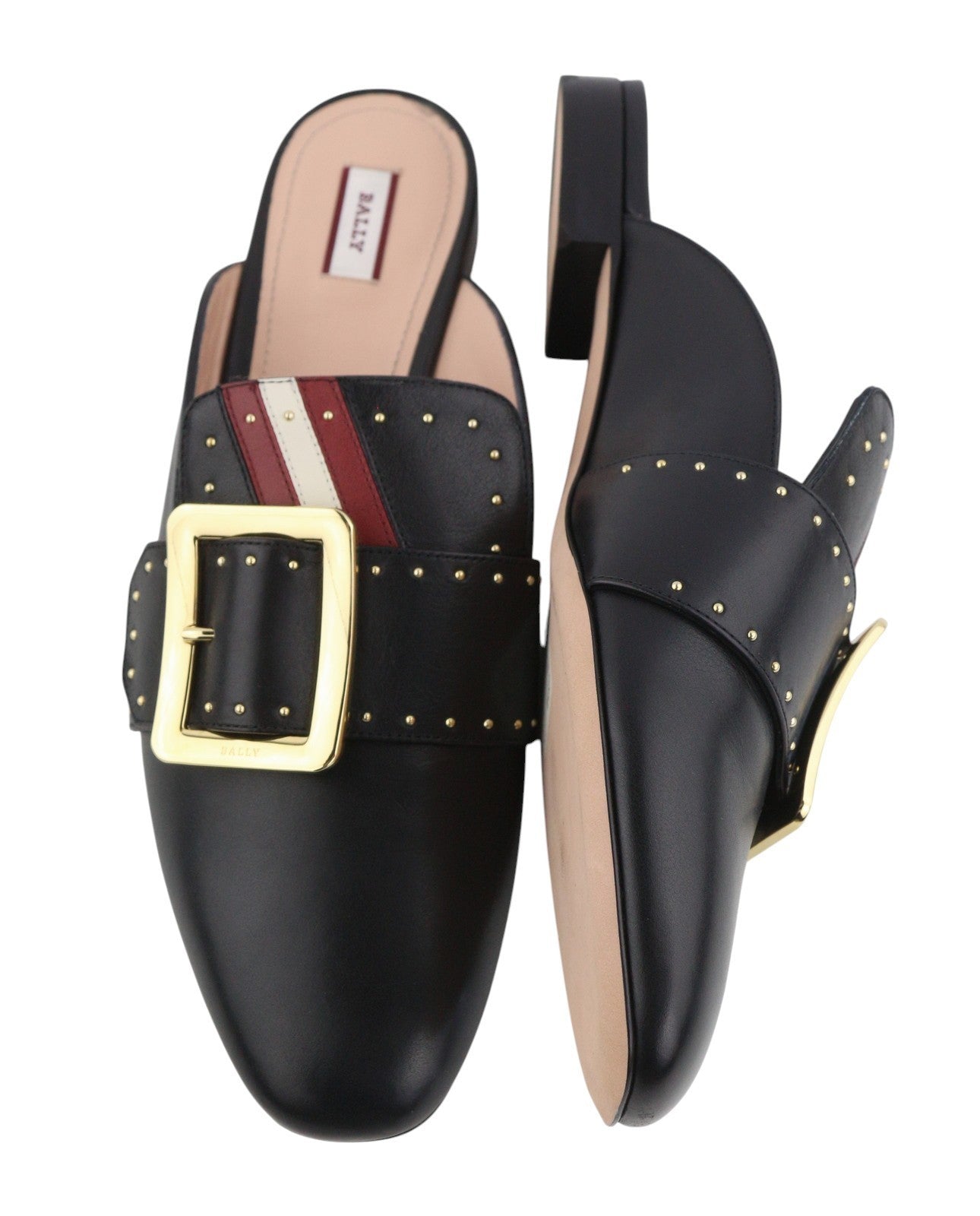 BALLY Janesse Women Flats EU40 Black Calfskin Leather Studs Mules Clogs RRP499
