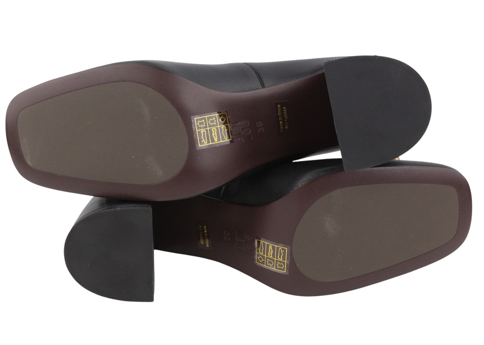 BIBI LOU Dennis Women Heels EU39 Black Leather Square Gold Tone Details Pumps