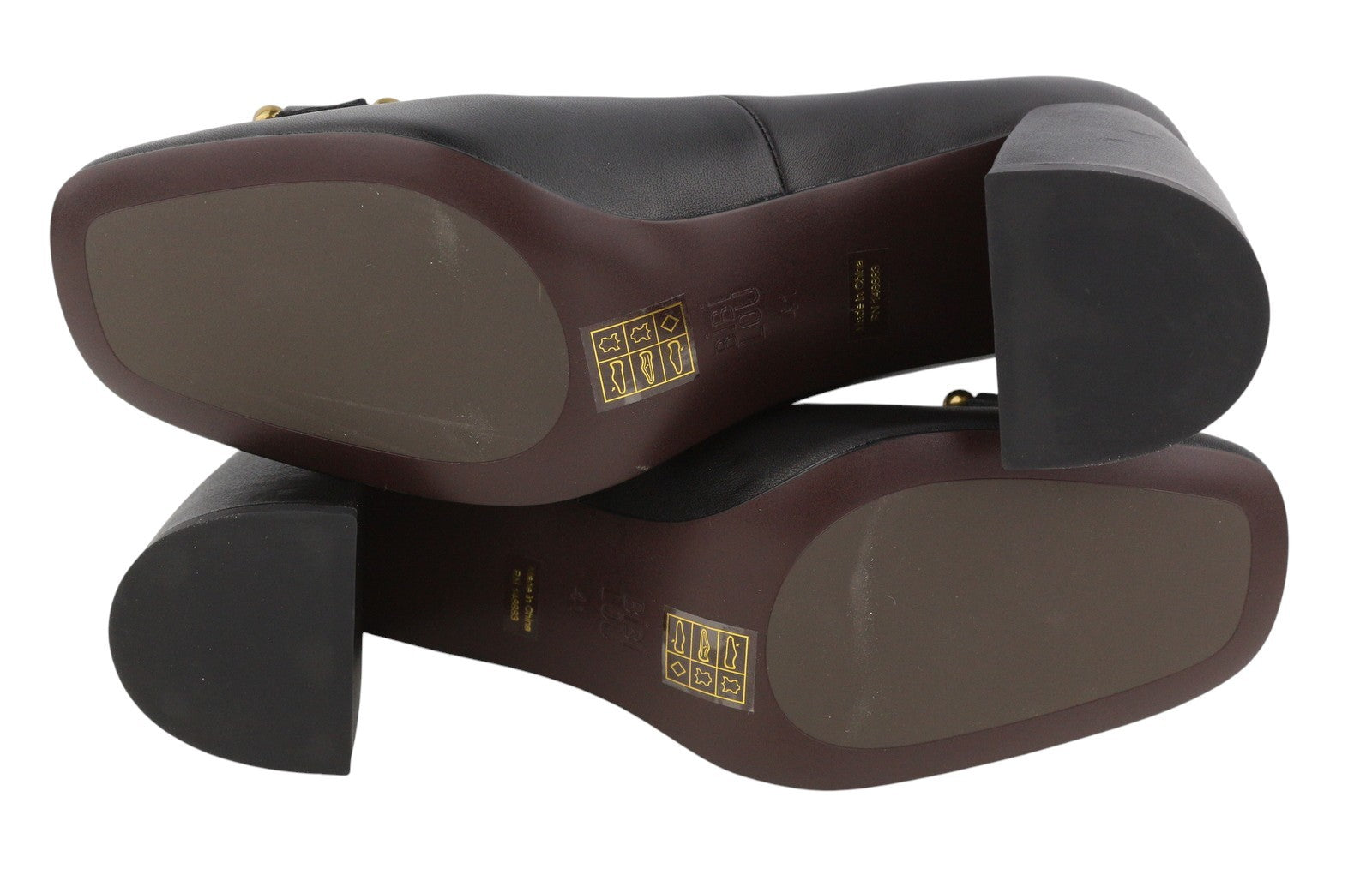 BIBI LOU Dennis Women Heels EU41 Black Leather Square Gold Tone Details Pumps