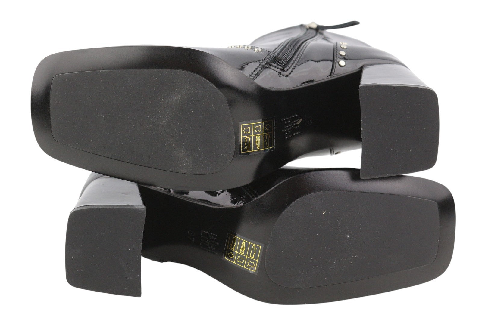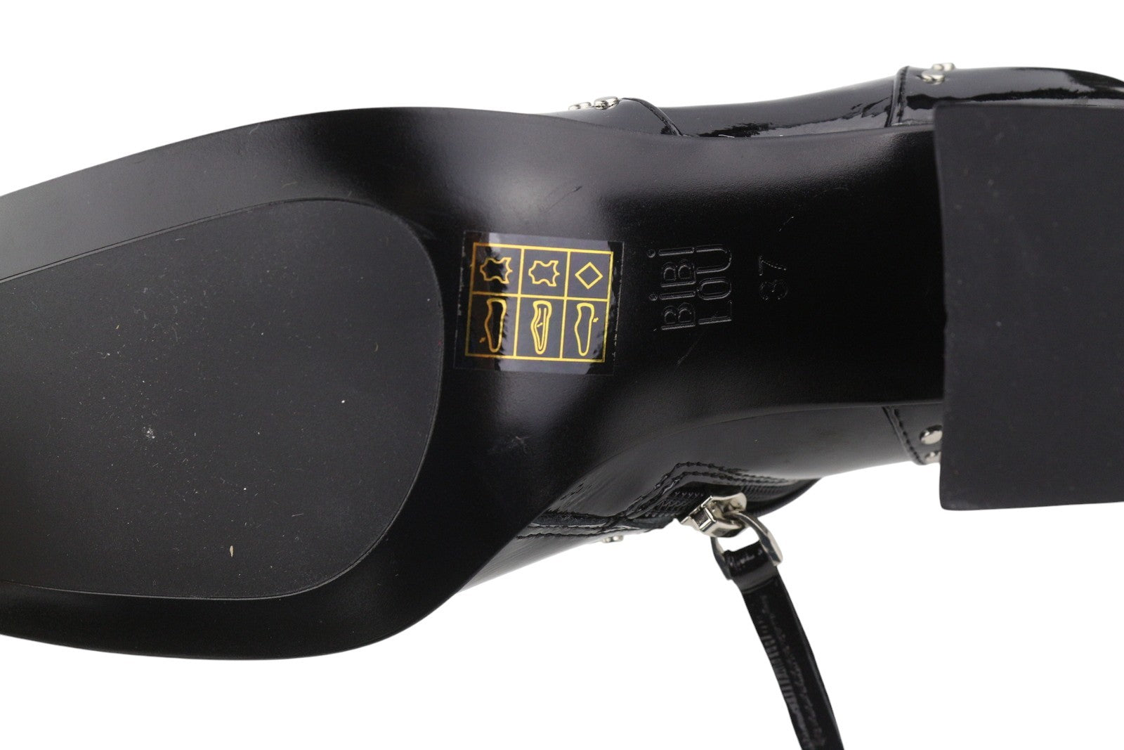 BIBI LOU Pola Women Boots EU37 Black Patent Leather Square Toe Ankle Heels