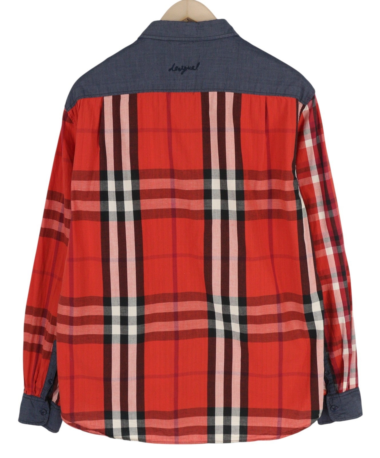 DESIGUAL Men's Shirt XL Plaid Casual Button Shirt With Patch Pocket