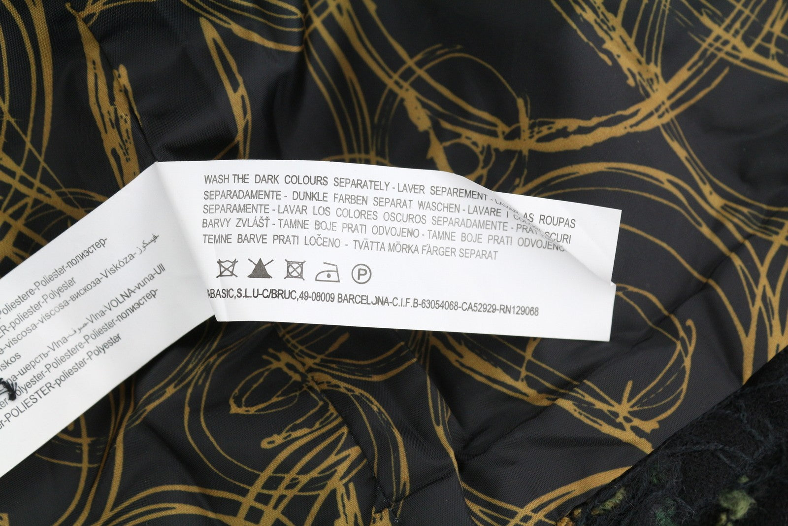 DESIGUAL Women's Coat XS Black Wool Blend Pattern Faux Fur Trim