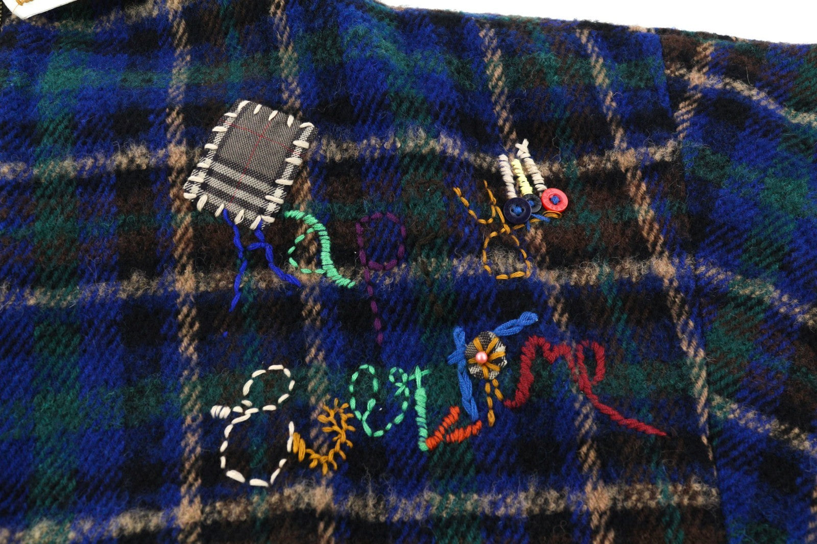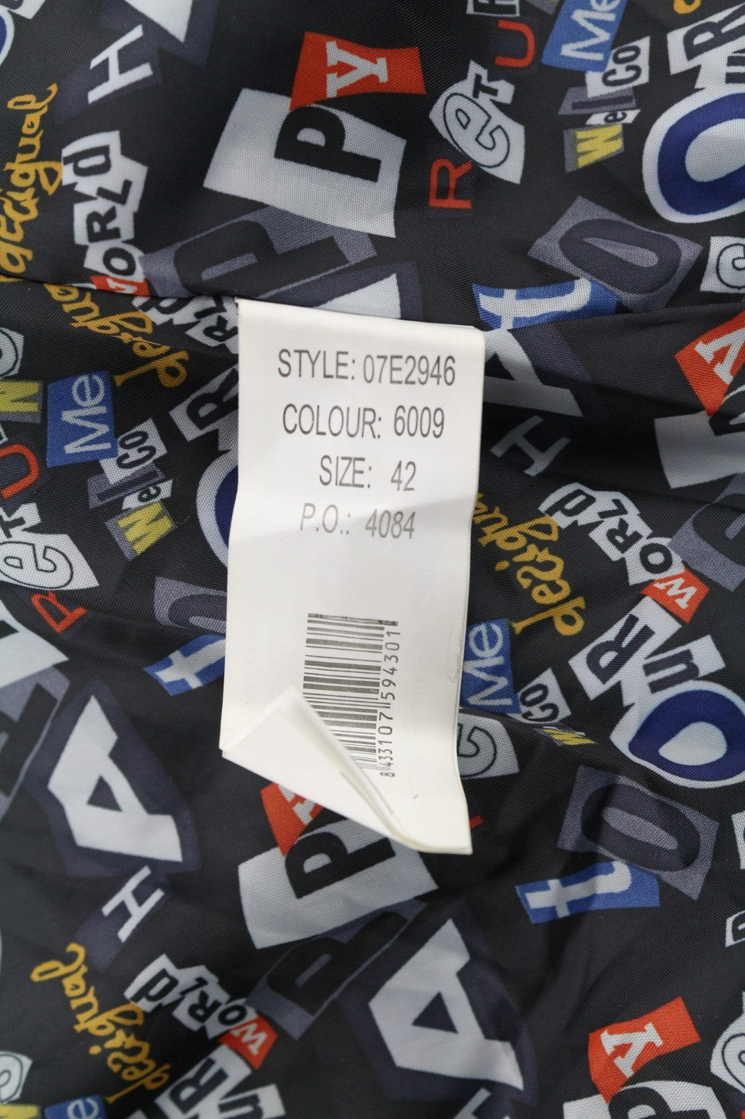 DESIGUAL moteriškas ~L dydžio vilnos mišinio languotas paltas trumpomis rankovėmis su aukštu kaklu ir logotipu