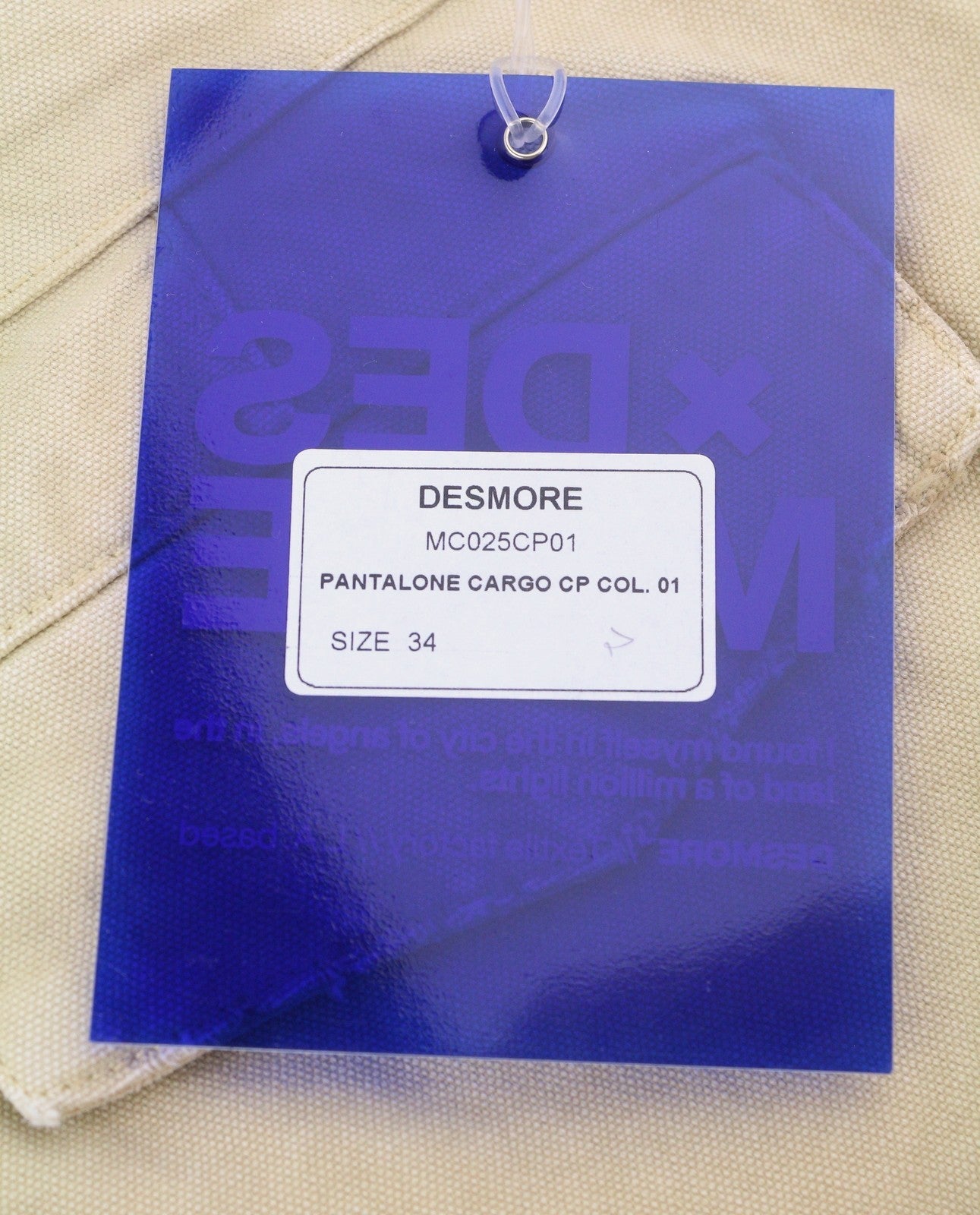 DESMORE Cargo Men Trousers W34 Light Brown Faded Patch Pockets Distress Zip