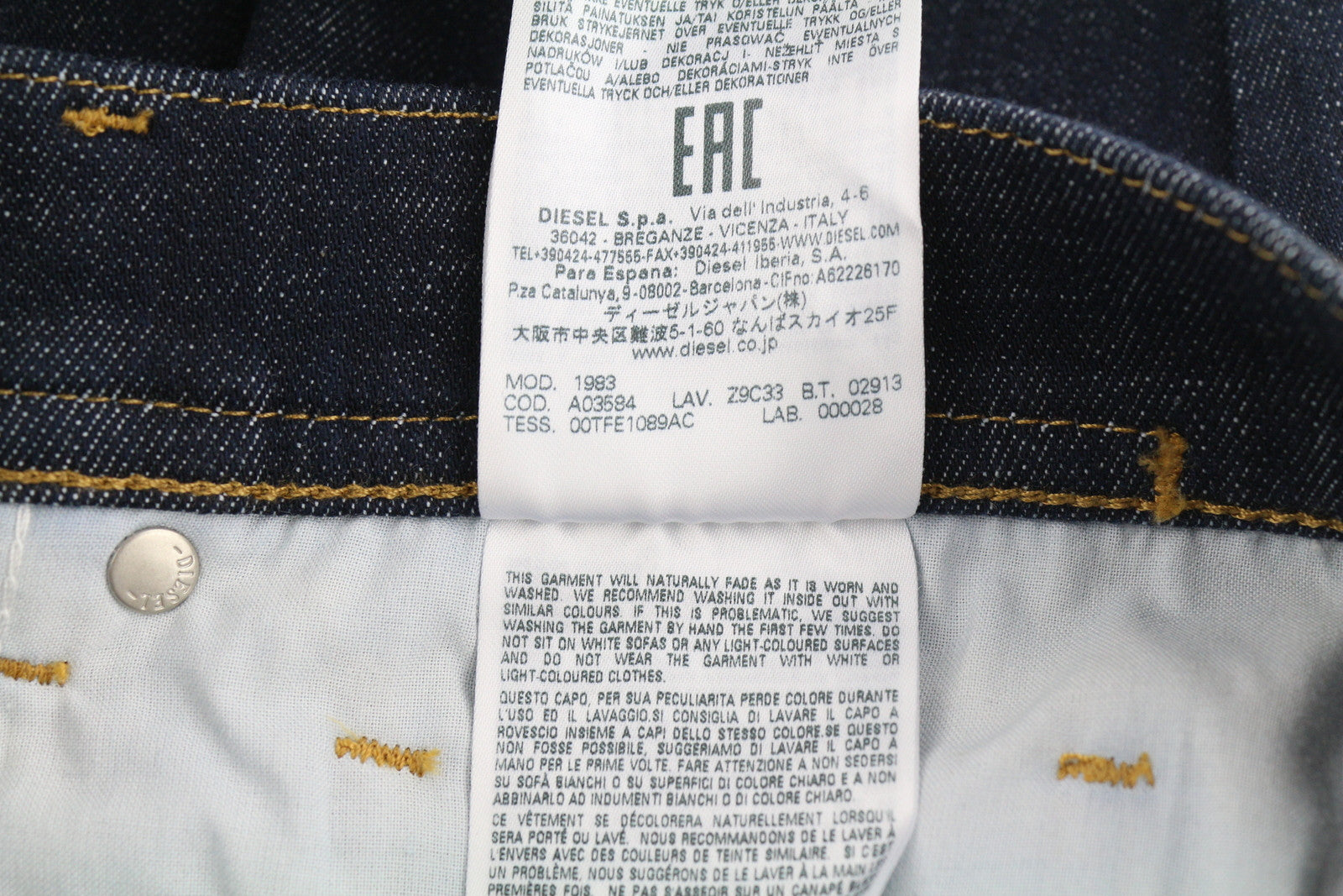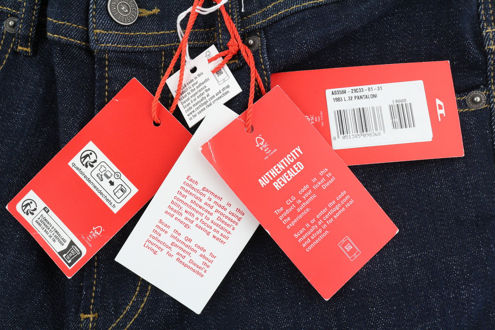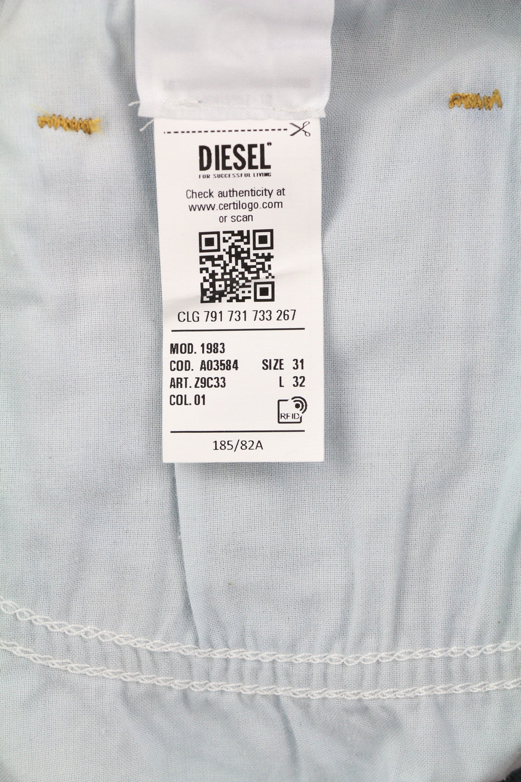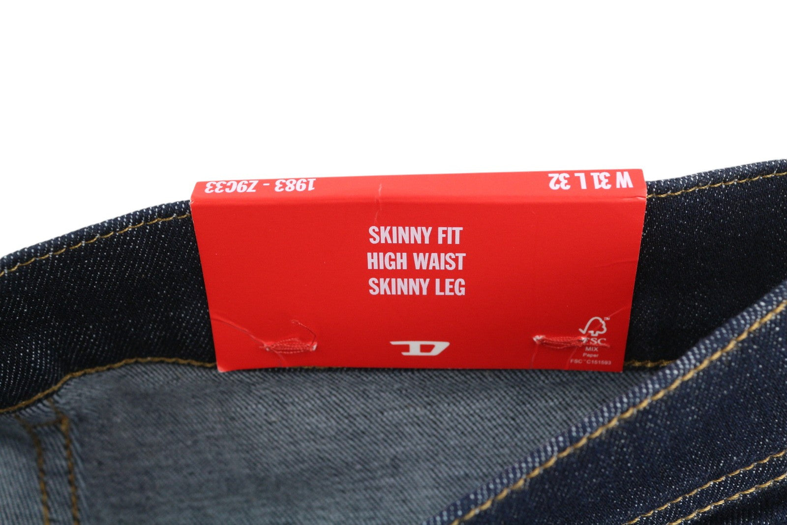 DIESEL 1983 Z9C33 vyriški džinsai W31/L32 aptempti, aukštu juosmeniu, užtrauktuku, mėlyni