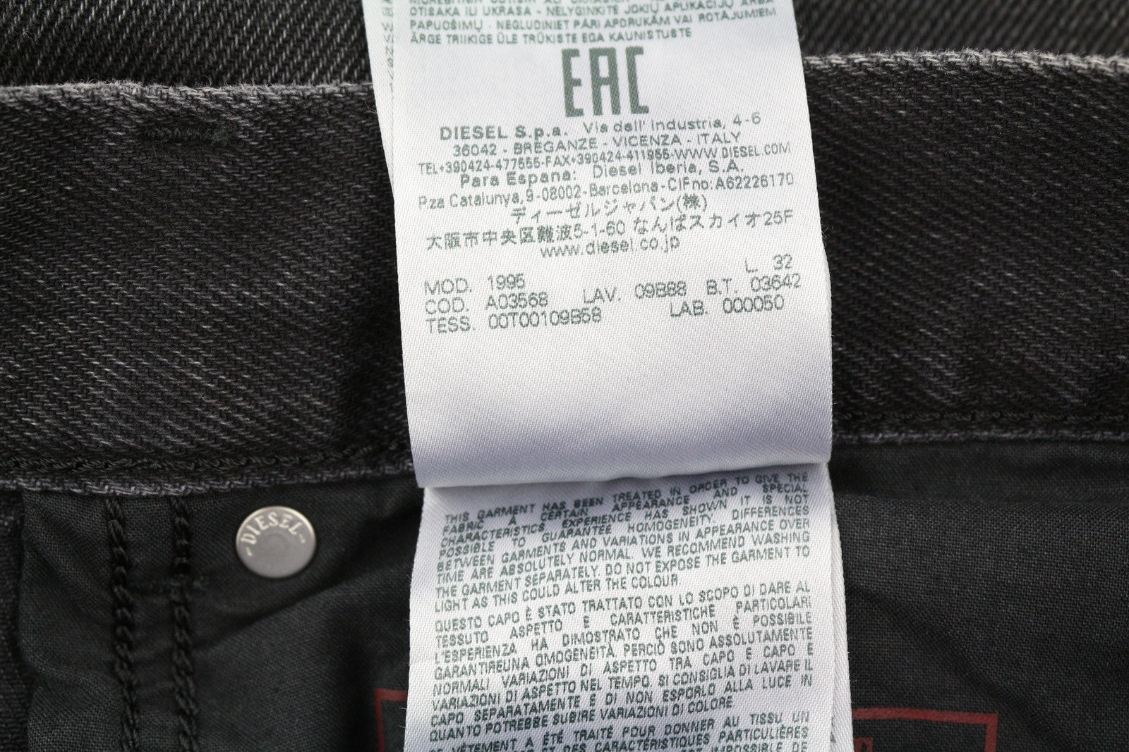 DIESEL 1995 09B88 Men's W36/L32 Slim Straight Black Washed Button Denim RRP185