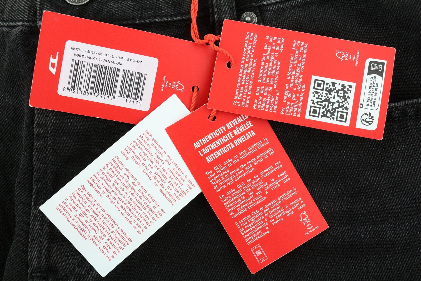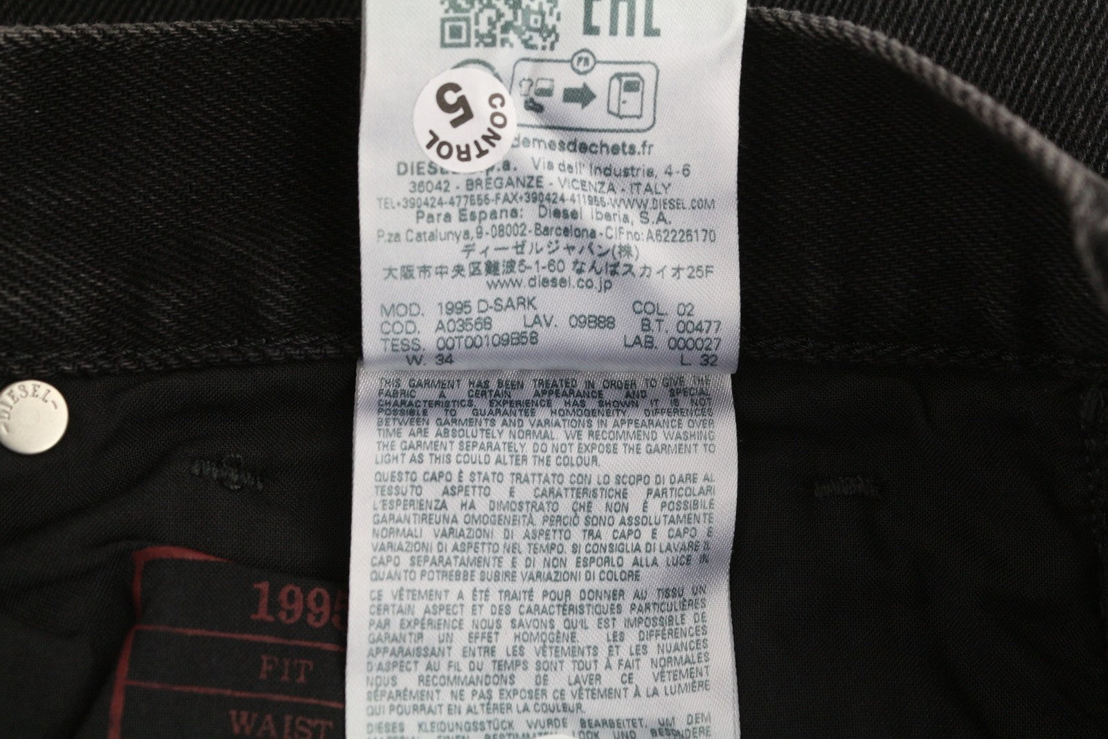 DIESEL 1995 D-Sark 09B88 Men's W34/L32 Slim Straight Black Denim Jeans RRP185