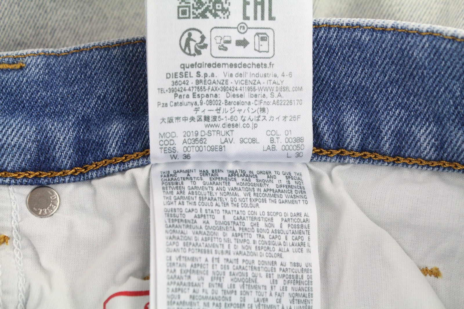 DIESEL 2019 D-Strukt 9C08L Men's W36/L30 Slim Zip Fly Denim Washed Blue RRP250