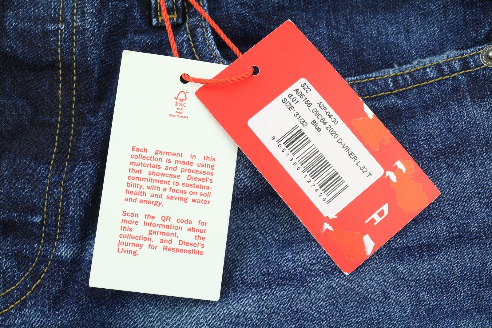 DIESEL 2020 D-Viker 09C64 Men Jeans W31/L32 Blue Washed Regular Straight Leg