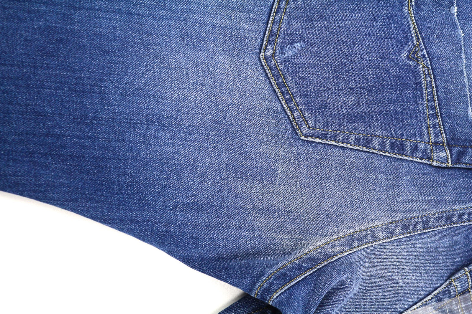 Stain on right leg. Faded / yellowish line on back. Please see added photos.