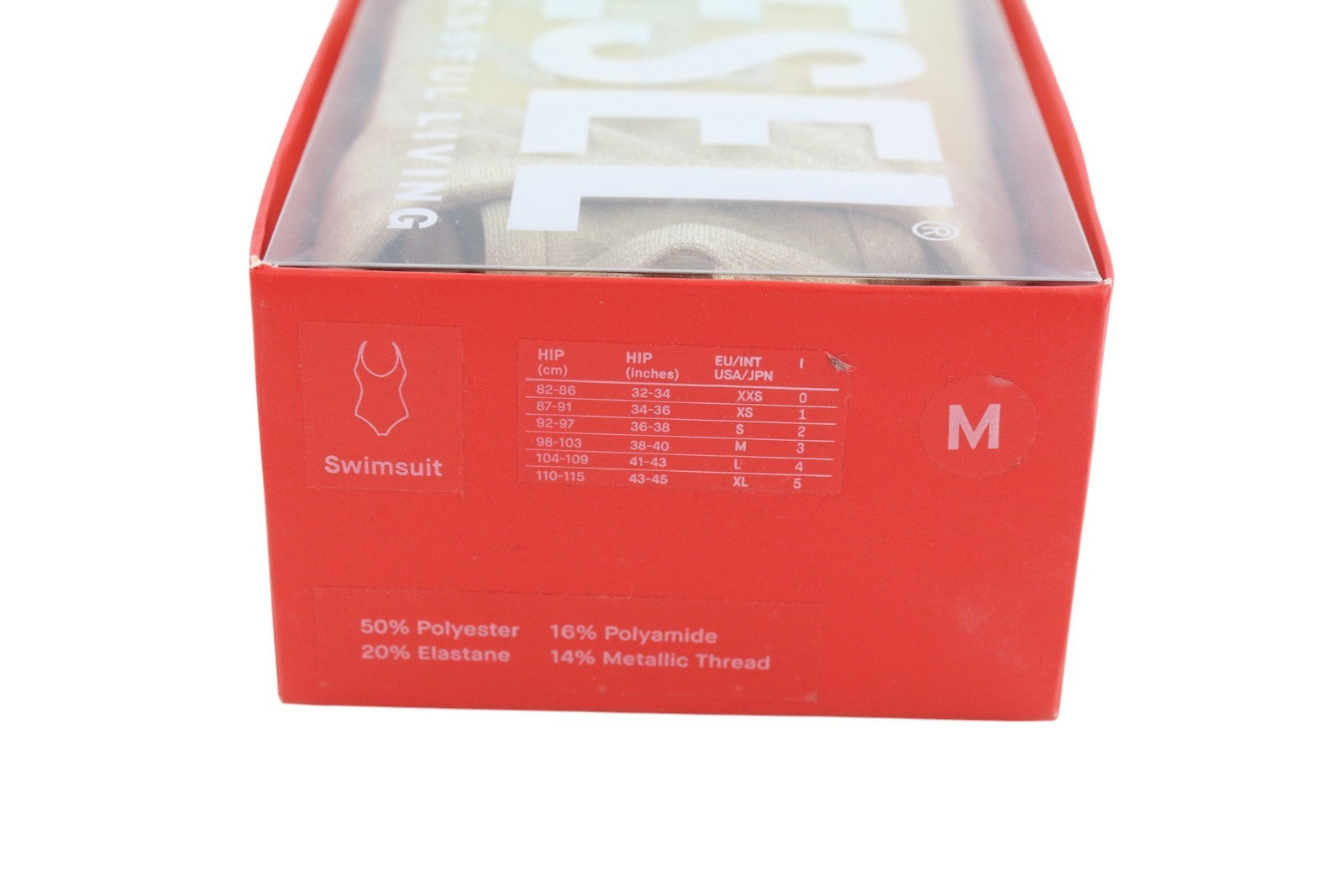 DIESEL Bfsw-Gretel Women's Swimsuit M One-Piece Glitter Stretch Beige RRP110