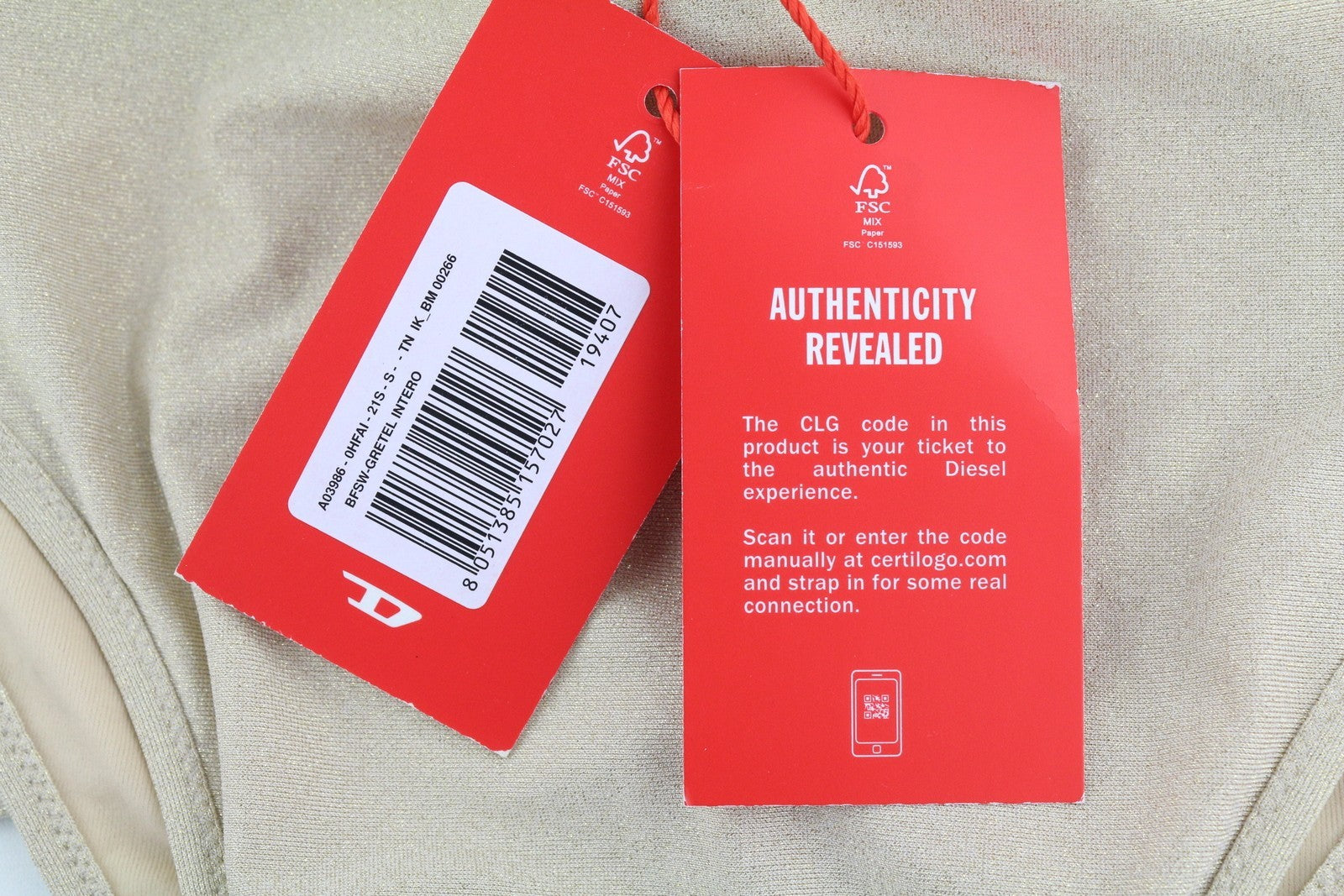 DIESEL Bfsw-Gretel Women's Swimsuit S One-Piece Glitter Stretch Beige RRP110