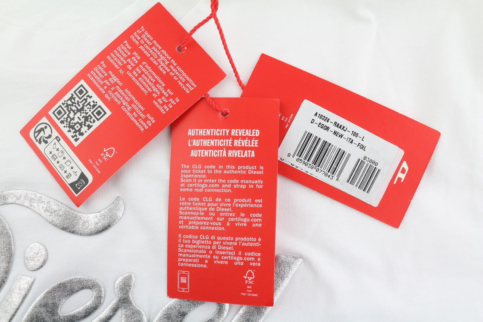 DIESEL D-Egor-New-Ita-Foil Women's Dress L White Short Sleeve Tricot Mini