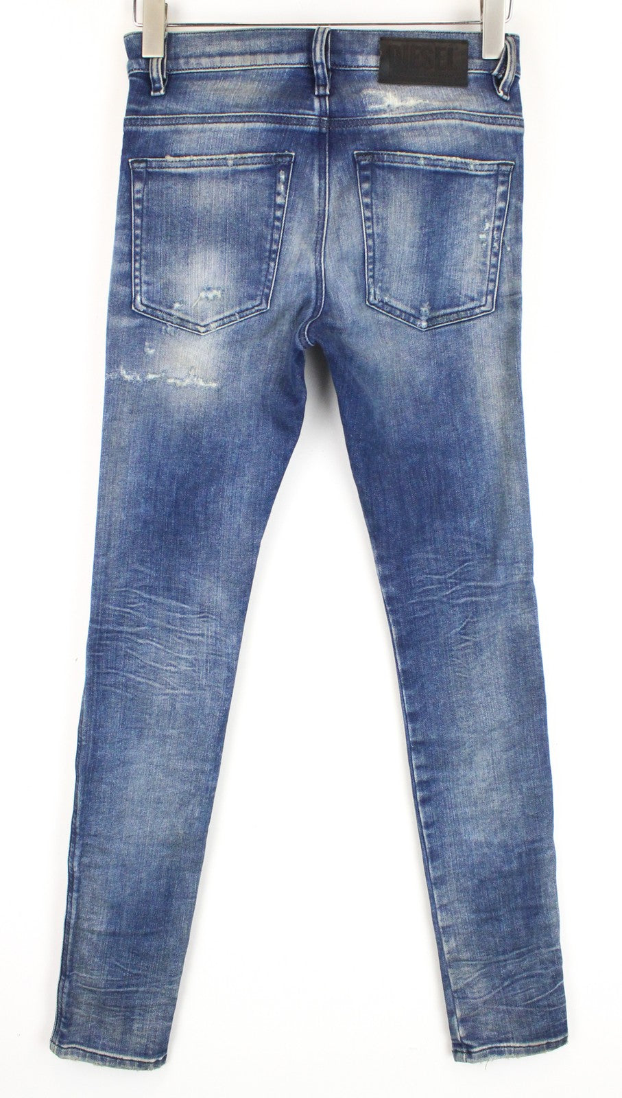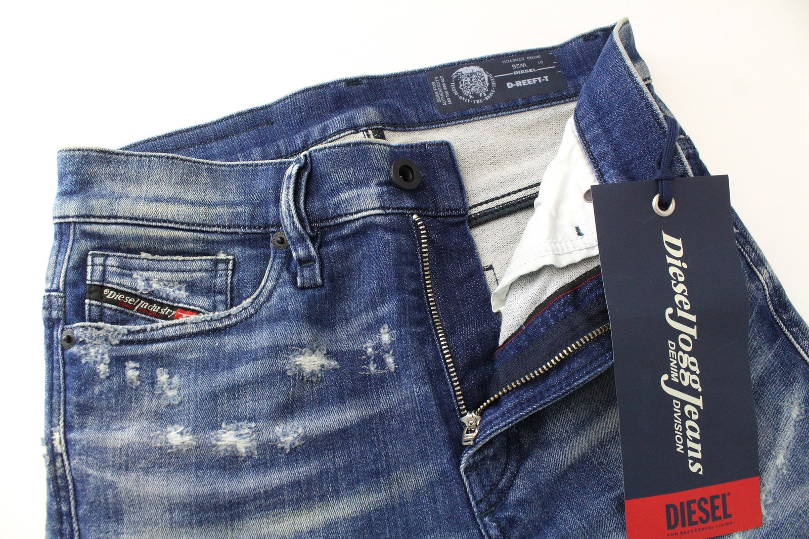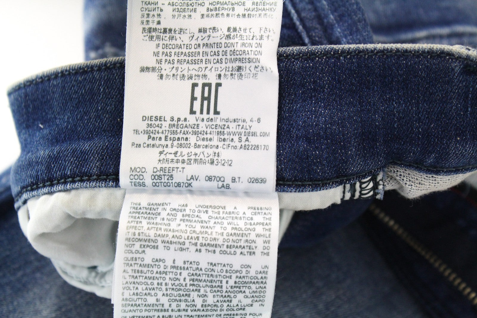 DIESEL D-Reeft-T 0870O W26 vyriški džinsai, aptempti, berniukiški, sportiniai, su dėmėmis.