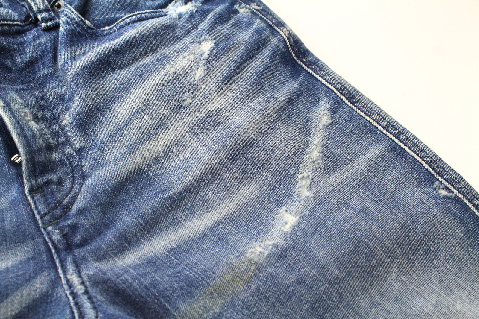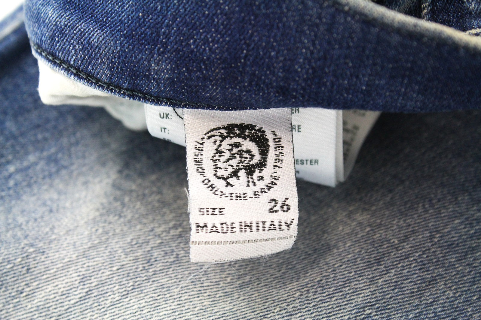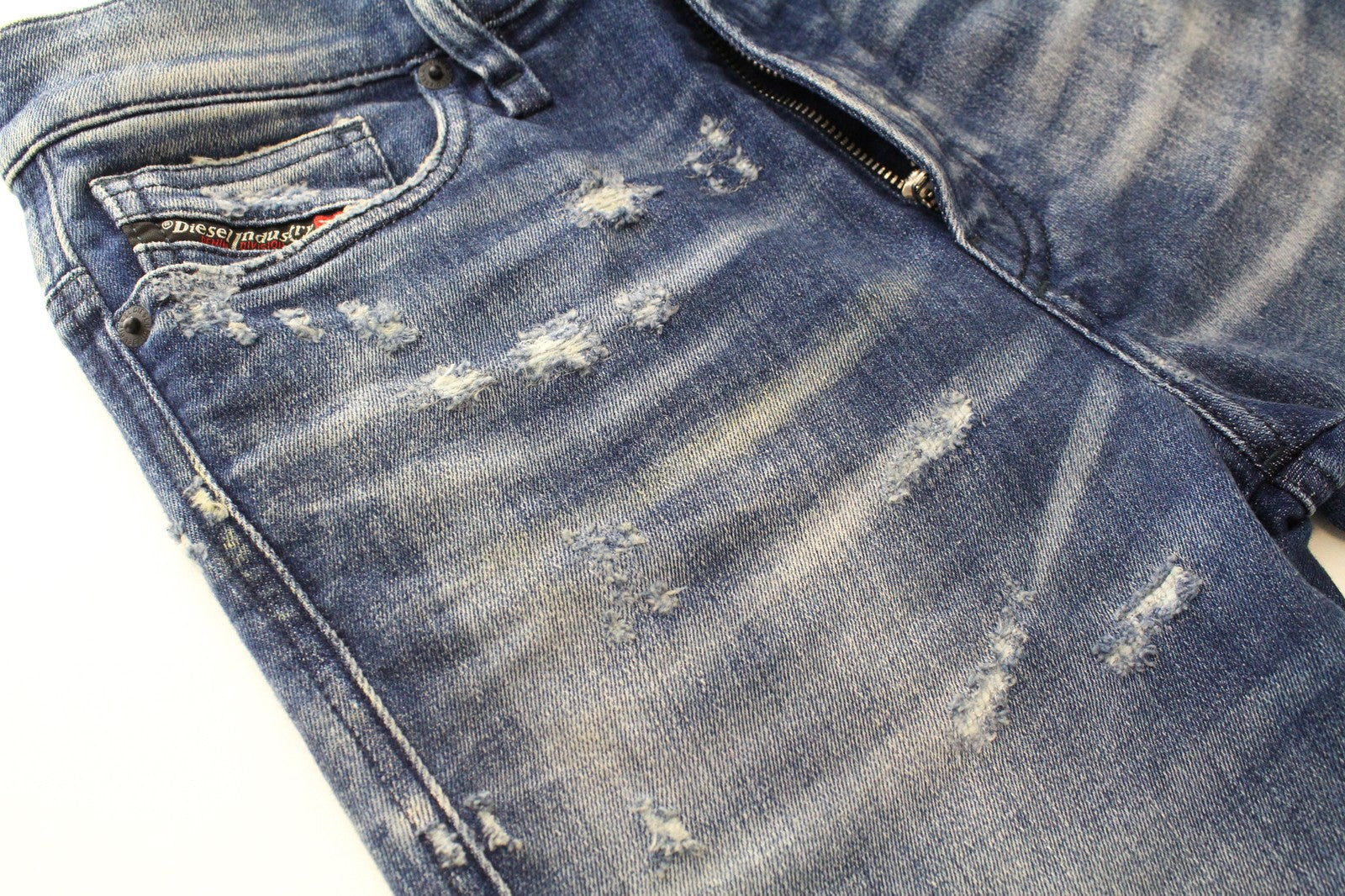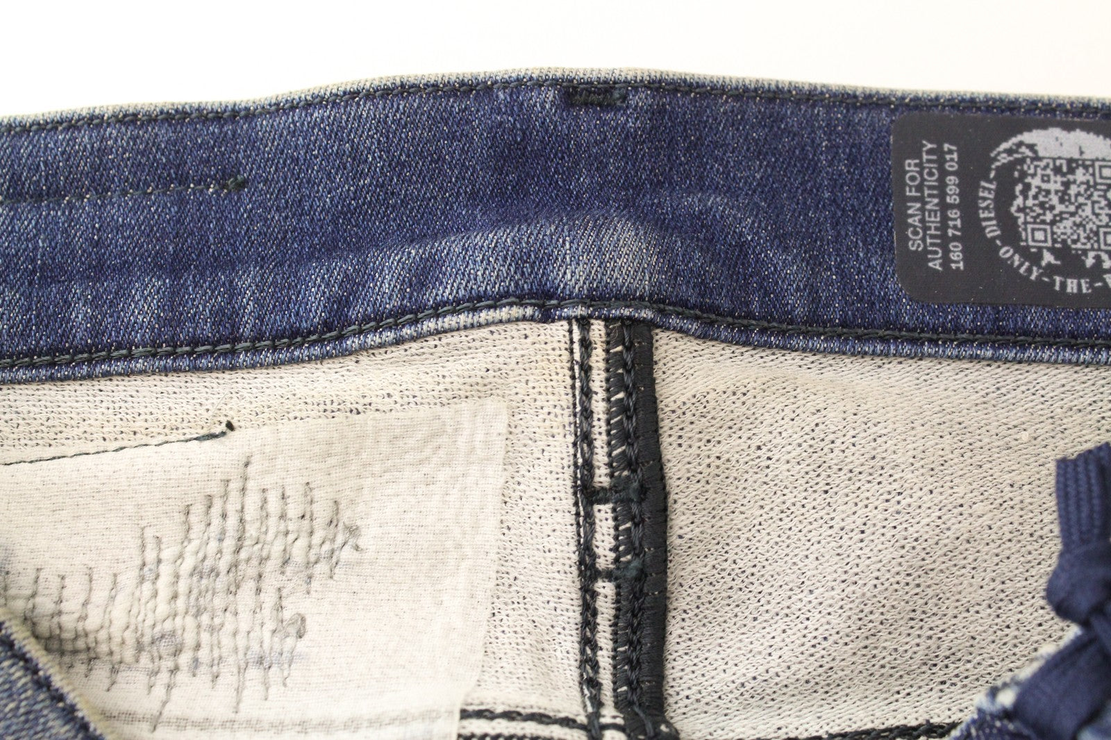 DIESEL D-Reeft-T 0870O W26 vyriški džinsai, aptempti, berniukiški, sportiniai, su dėmėmis.