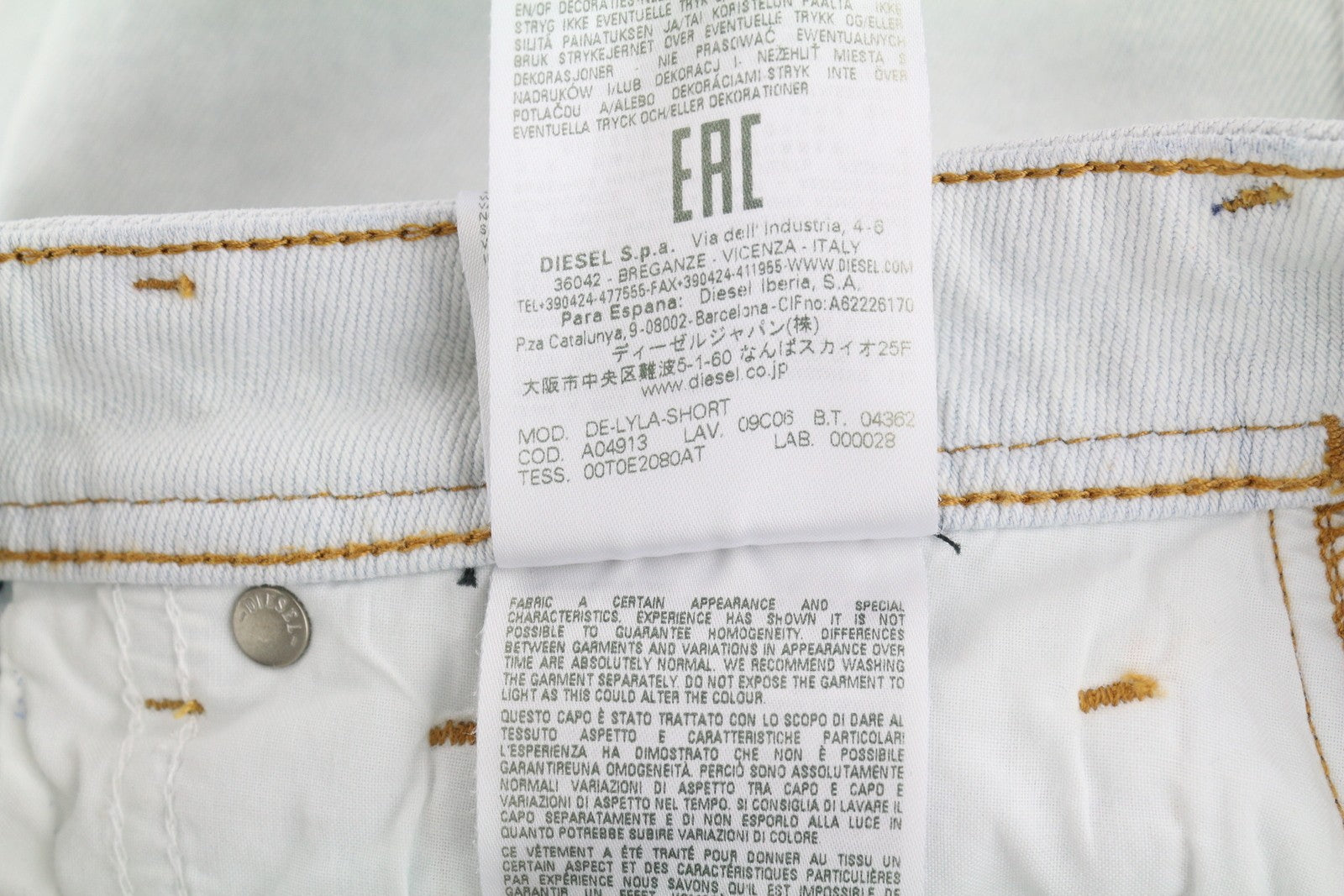 DIESEL De-Lyla 09C06 Women's Shorts W26 Light Blue Denim Zip Fly Pocketed