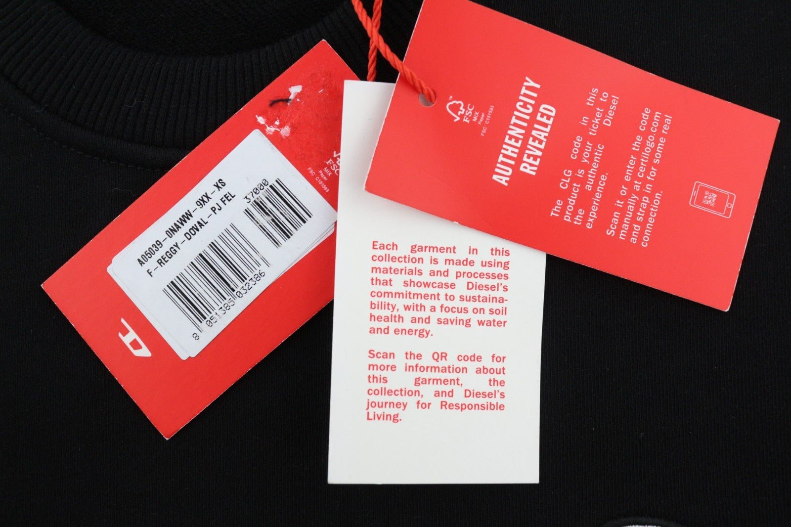 DIESEL F-Reggy-Doval Women Sweatshirt XS Black Pullover Crew Long Sleeve RRP175