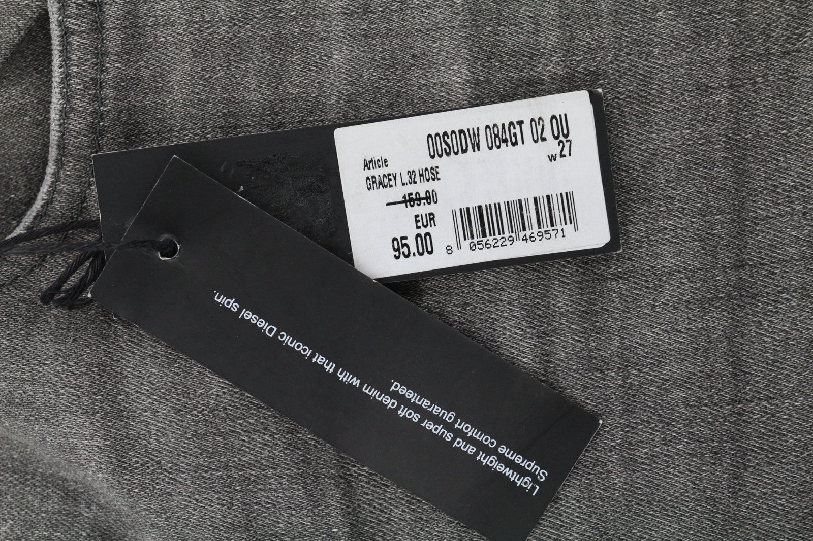 DIESEL Gracey 084GT Women's Jeans W27/L32 Grey Super Slim Skinny Ripped Wash