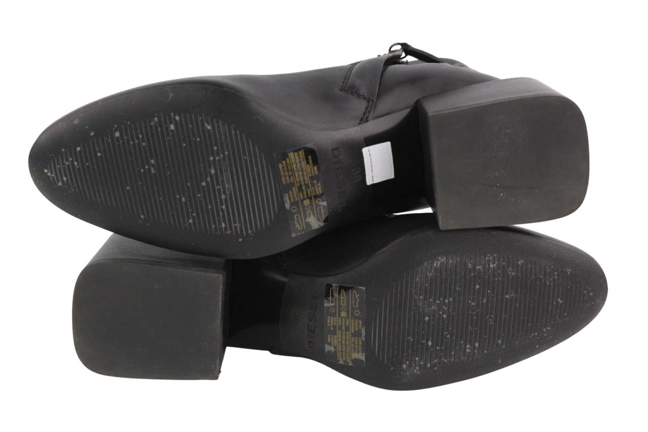DIESEL Jaynet MAB Women's Boots EU38 Black Leather Zip Almond Heel Logo RRP290