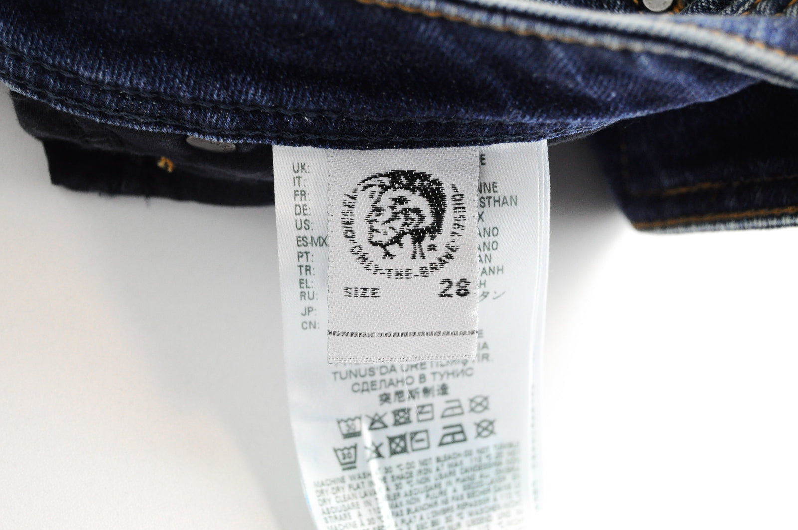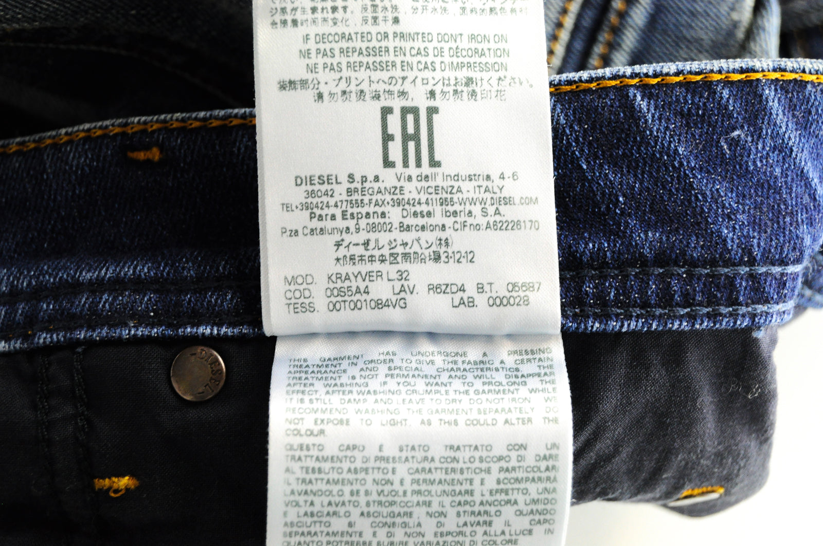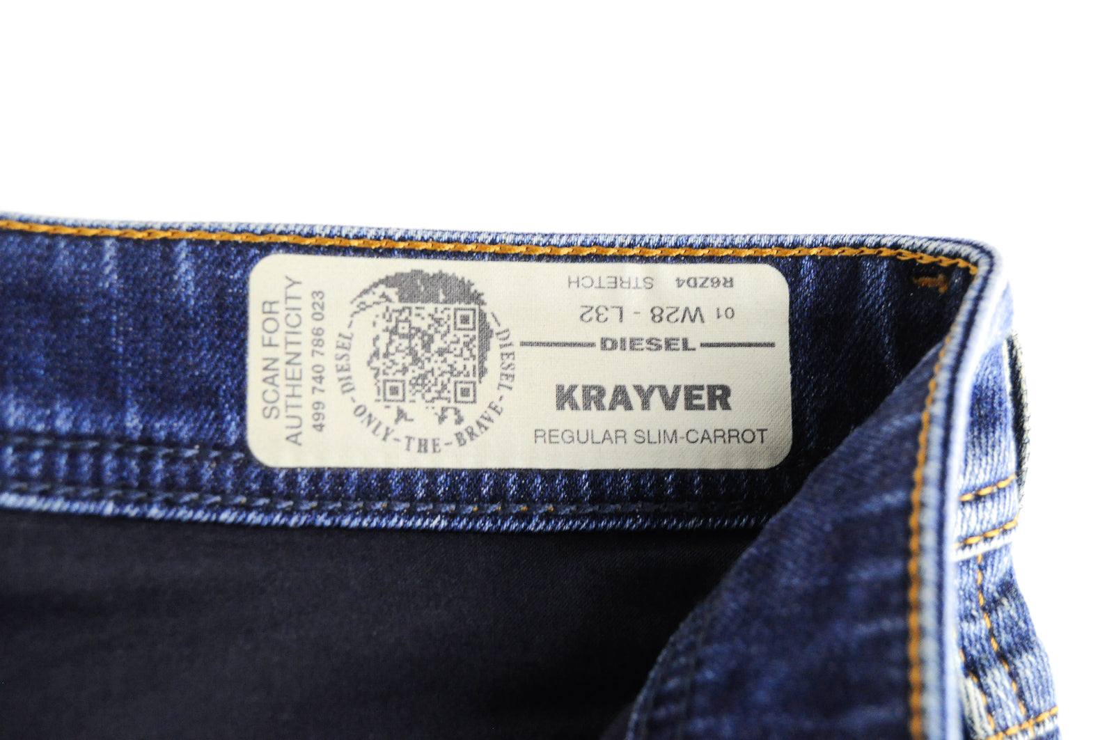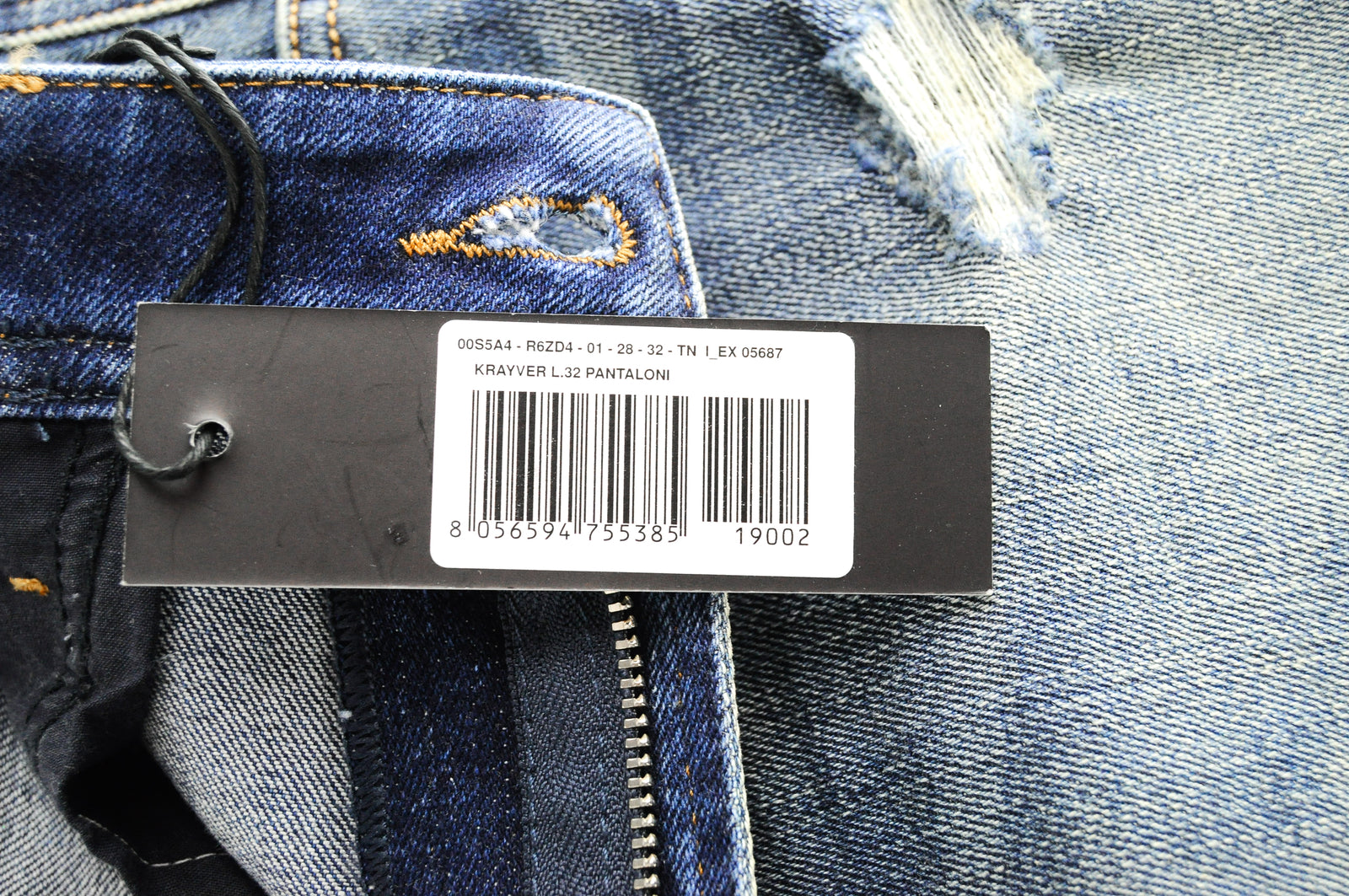 DIESEL Krayver R6ZD4 vyriški mėlyni ploni, plėšyti, tamprūs džinsai W28/L32 skalbti