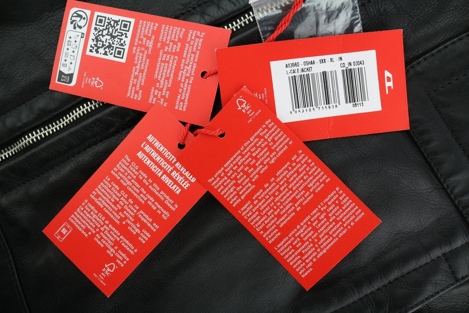 DIESEL L-Cale Men's Jacket XL Black Cowhide Leather Polo Neck Zip Jacket RRP650
