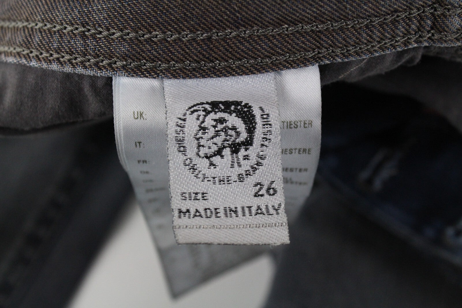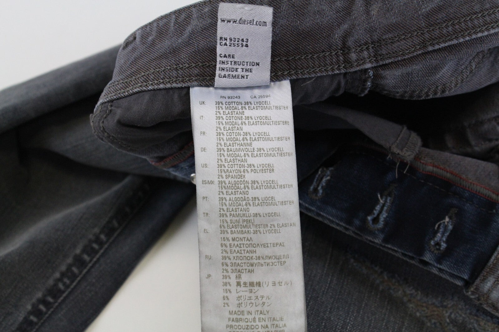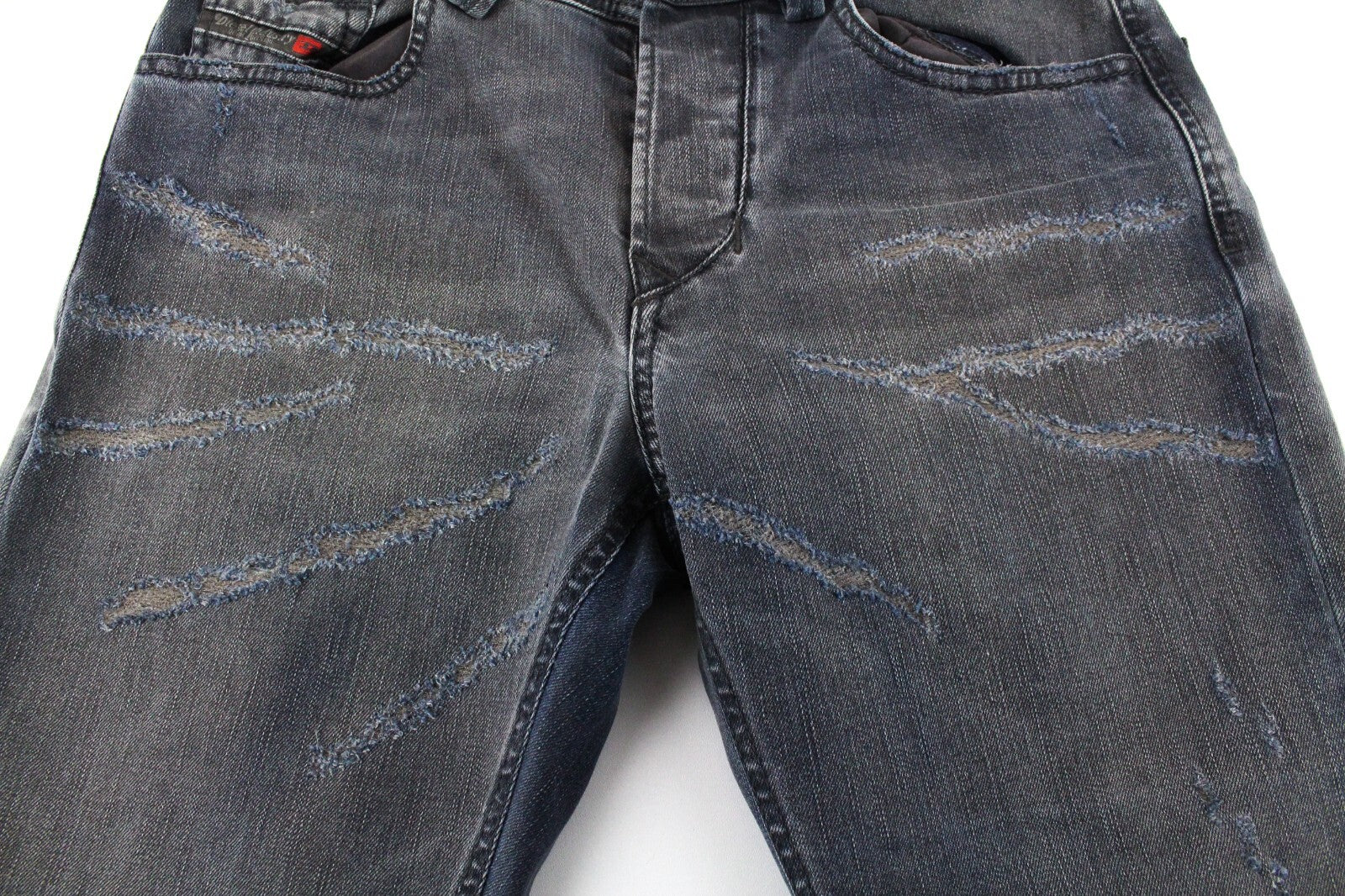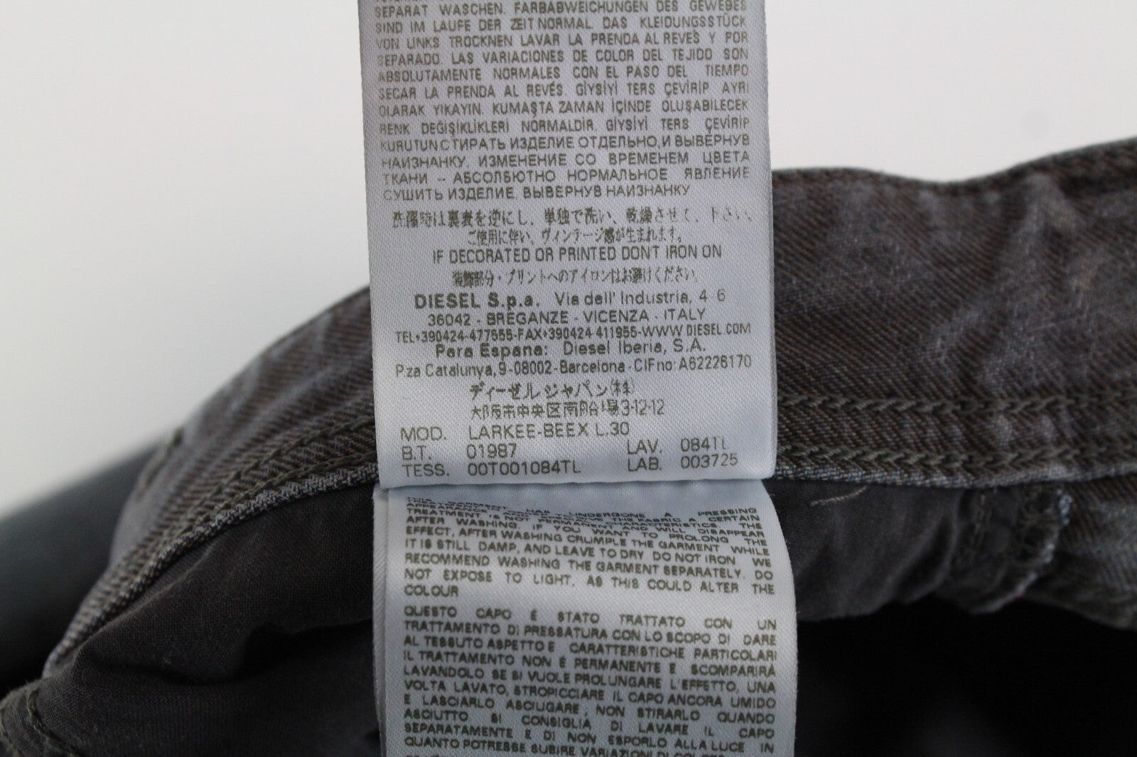 DIESEL vyriški džinsai W26/L30 Larkee-Beex 084TL siaurėjantys pilki plėšyti tamprūs džinsai