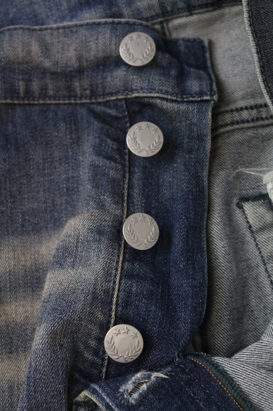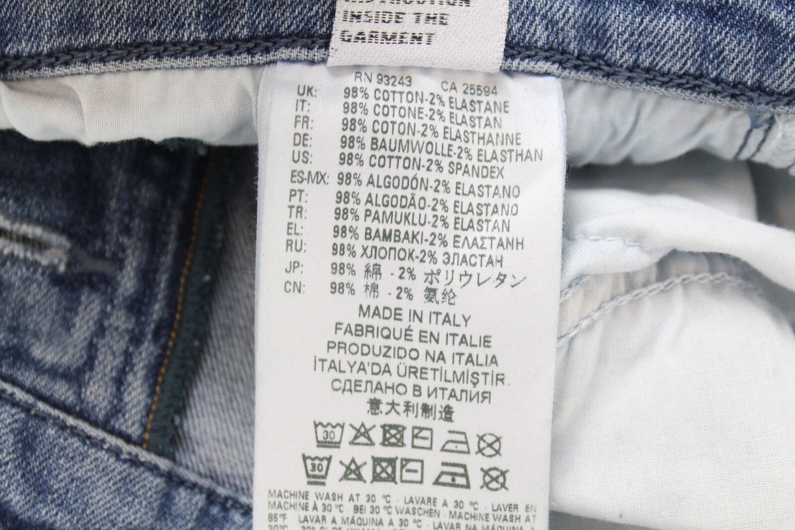 DIESEL vyriški džinsai W30/L32 D-Vider 084AQ morkų kirpimo, sendinto mėlyno, tampraus rašto, plėšyti.