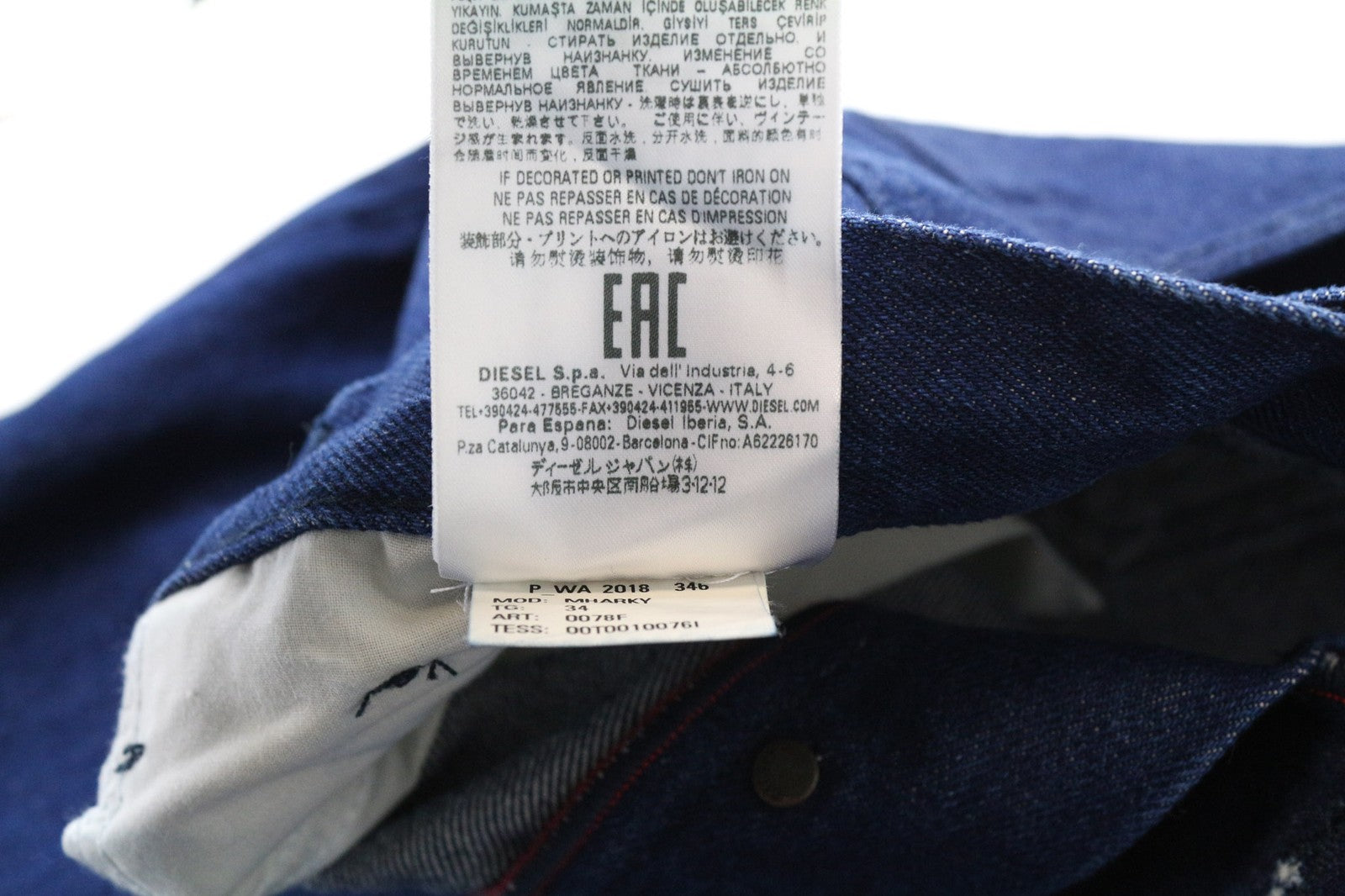 DIESEL Mharky 0078F vyriški džinsai W34 mėlyni, ploni, netempiami, su sagomis, aptempti