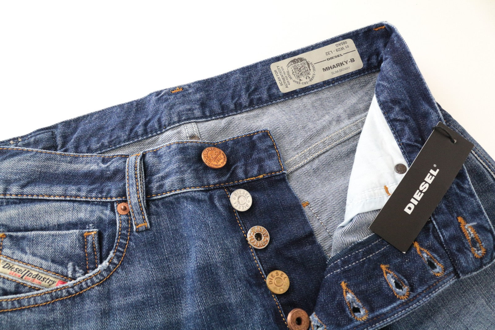 DIESEL Mharky-B 085AG W29/L32 Blue Jeans Skinny Fit Men's Washed Pure Cotton