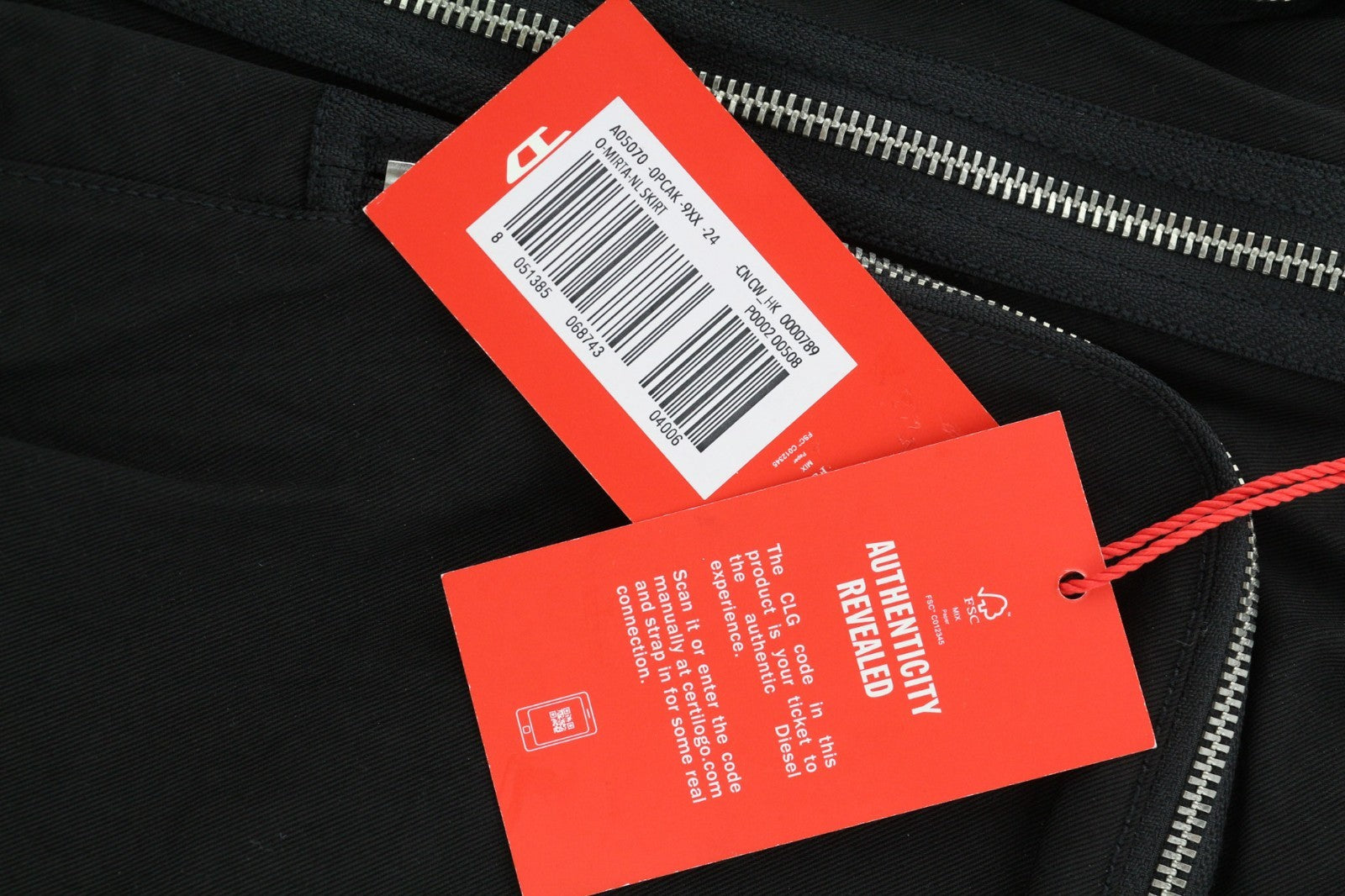 DIESEL O-Mirta-NL Women Skirt W24 Black Midi Elastic Waist Patch Pocket RRP275
