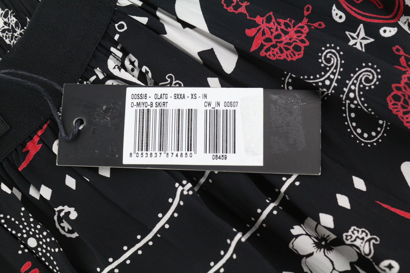 DIESEL O-Miyo-B Women's Skirt XS Elastic Waist Patterned Side Split Midi