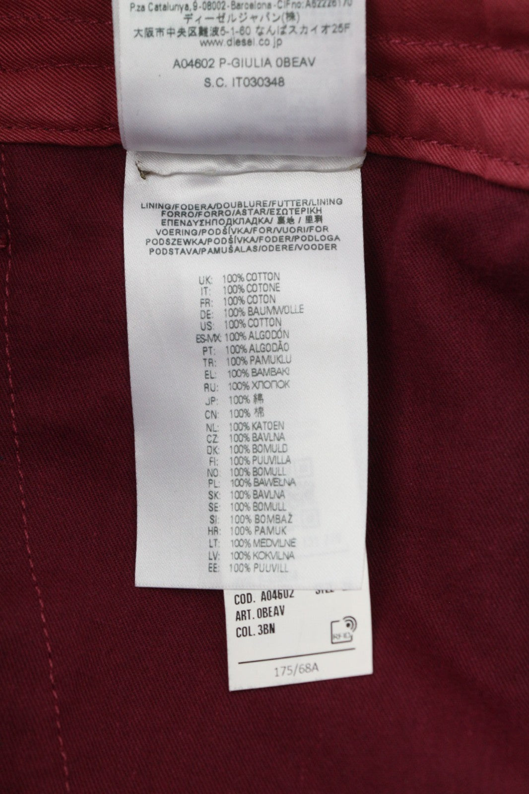 DIESEL P-Giulia moteriškos kelnės W26 Burgundijos spalvos lininės krovininės laisvalaikio stiliaus kelnės, RRP300