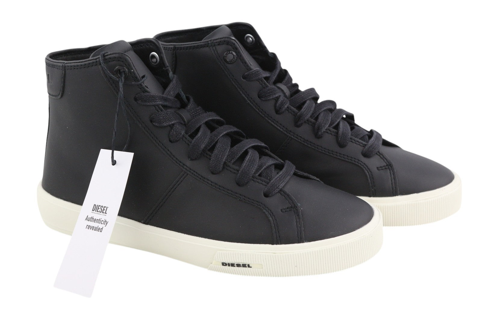 DIESEL S-Mydori Mc W moteriški sportbačiai, juodos odos, su raišteliais, migdolų nosimi, RRP220