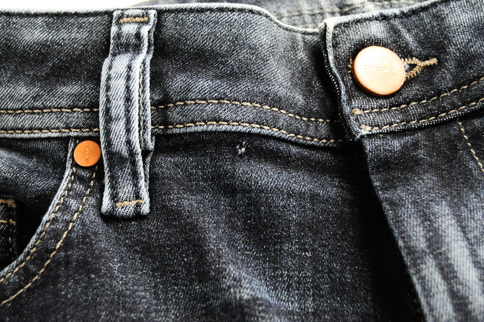DIESEL Stickker 0687M vyriški aptempti itin ploni džinsai W34 L30 akmens mėlynumo