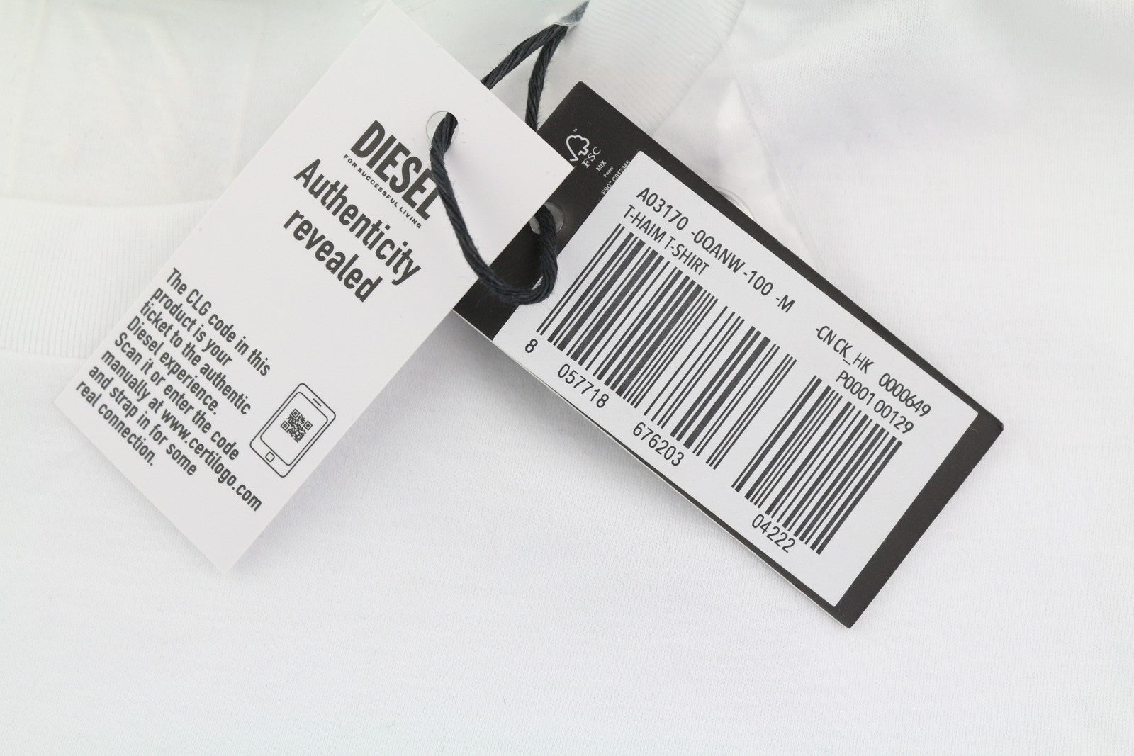 DIESEL T-Haim M Men T-Shirt White Tricot Patch Pocket Crew Neck Short Sleeve
