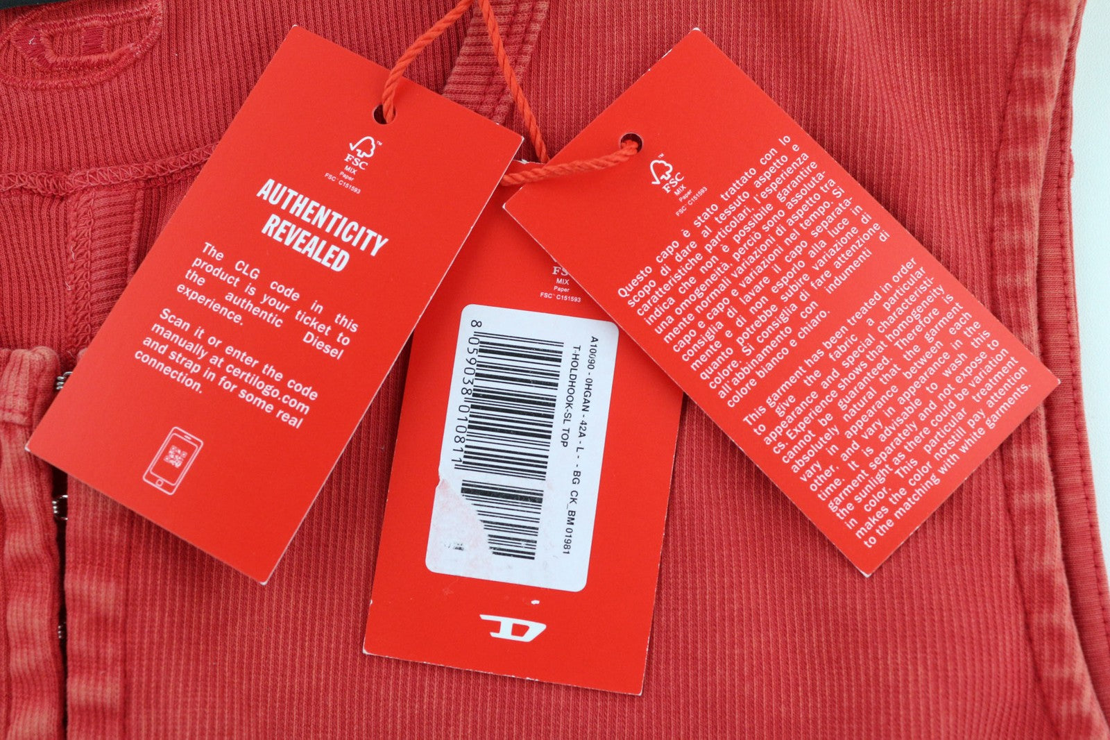 DIESEL T-Holdhook-SL Women's T-Shirt L Red Sleeveless Crew Hook Eye Closure