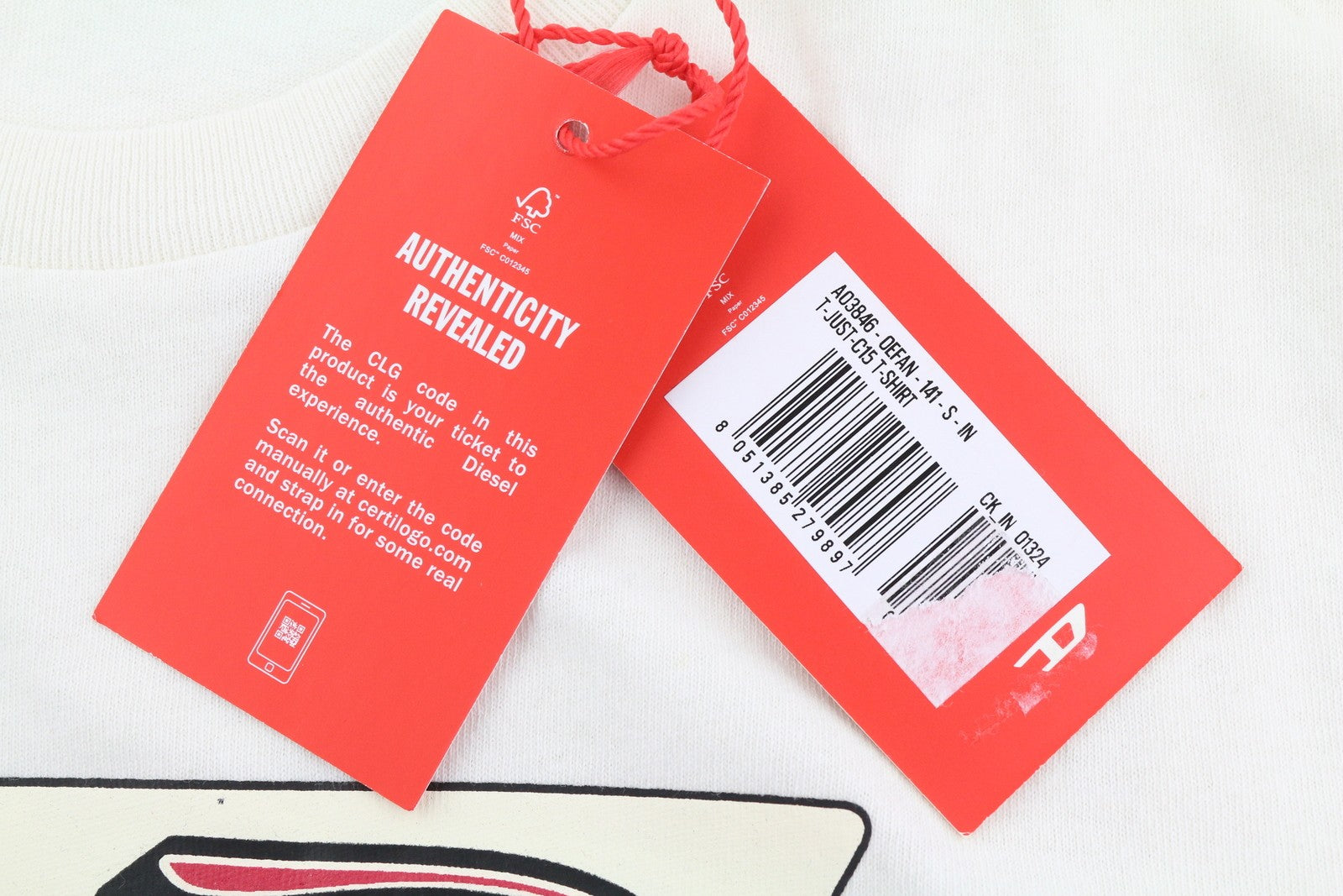 DIESEL T-Just-C15 S Men T-Shirt White Tricot Stretchy Crew Neck Short Sleeved