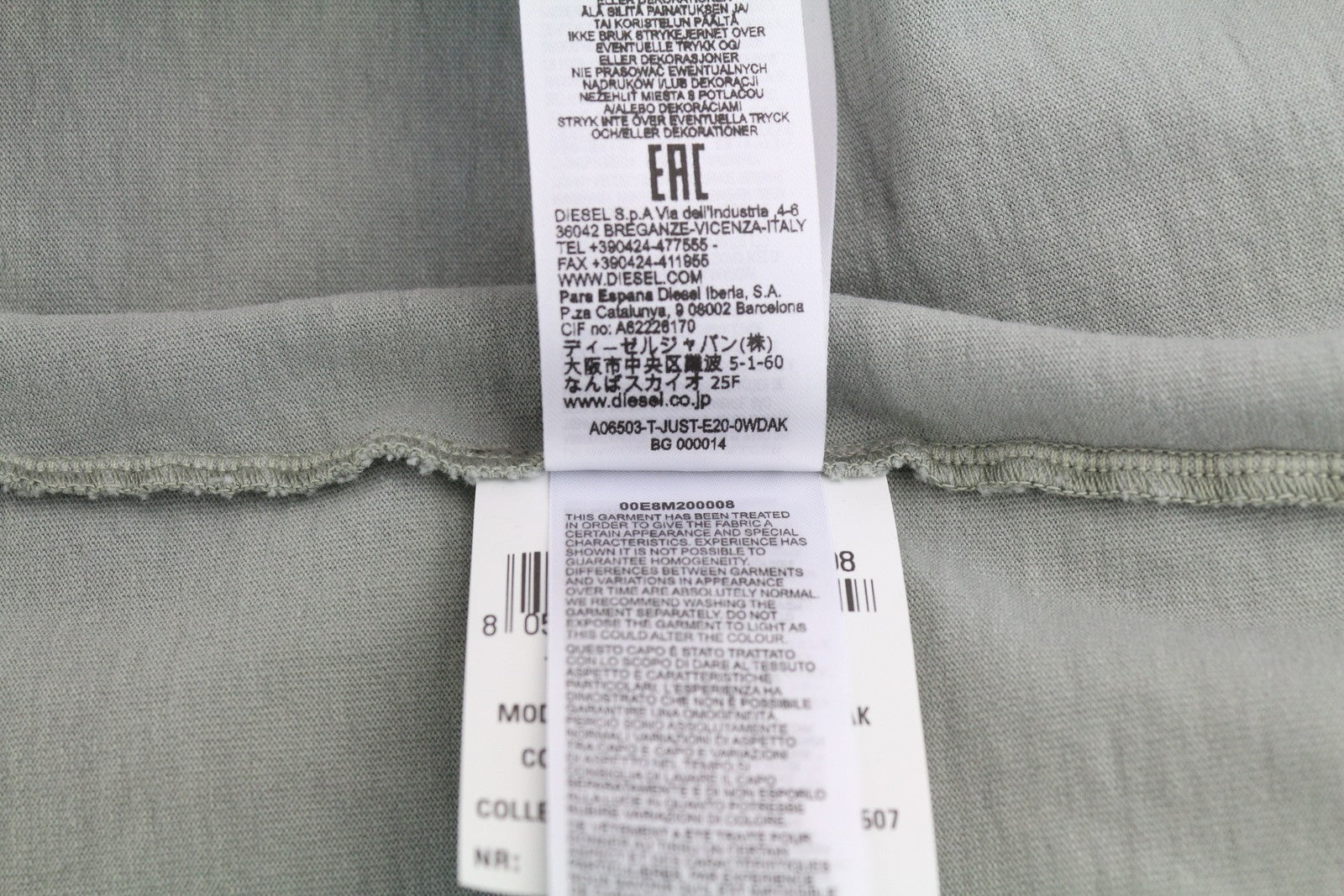 DIESEL T-Just-E20 vyriški marškinėliai pilki, išblukimo efekto apvali kaklo iškirpte, trumpomis rankovėmis, L dydžio
