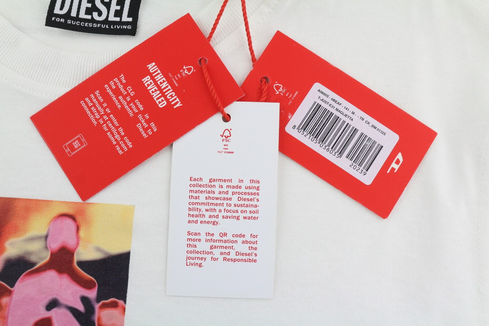 DIESEL T-Just-E31 Men's T-Shirt M White Stretch Cotton Crew
