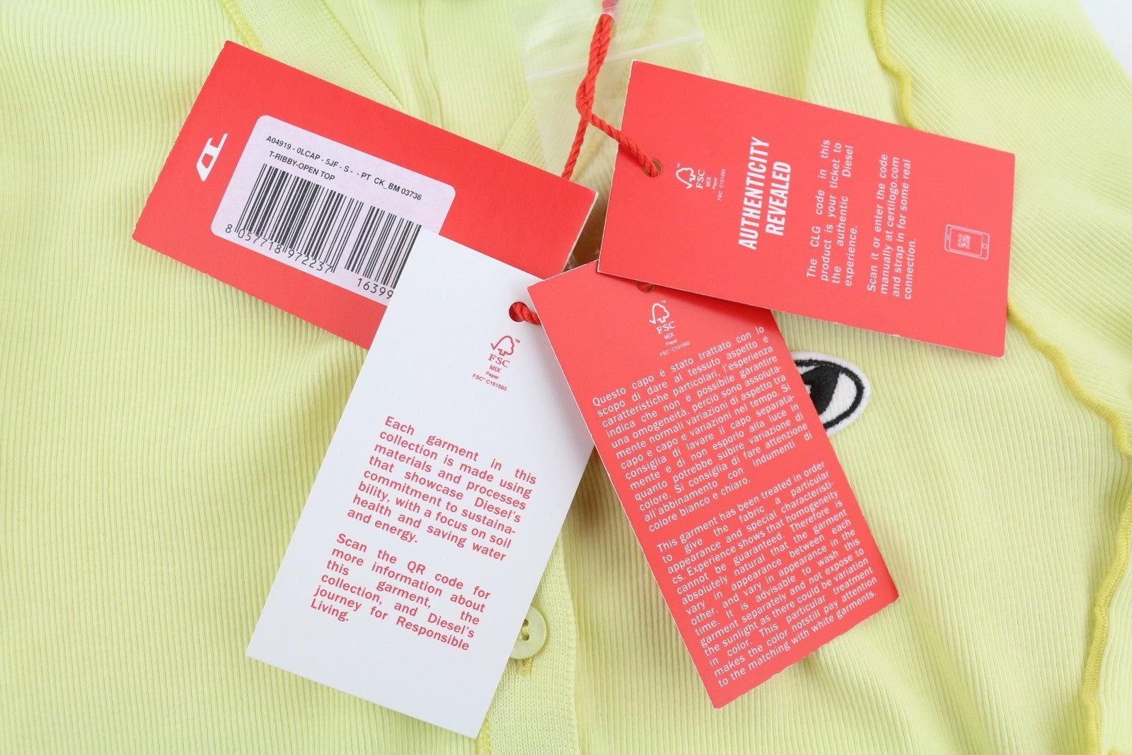 DIESEL T-Ribby-Open Women's T-Shirt S Yellow Ribbed Buttoned Crop Cardigan
