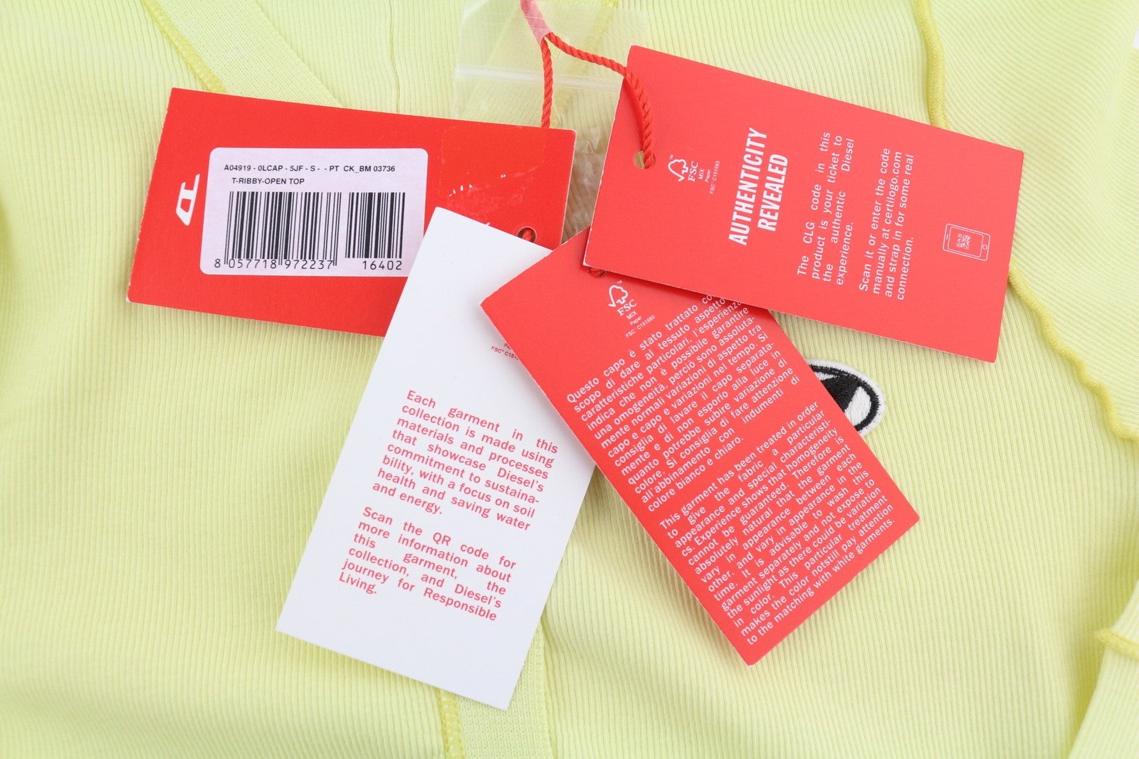 DIESEL T-Ribby-Open Women's T-Shirt S Yellow Ribbed Cropped Button Front