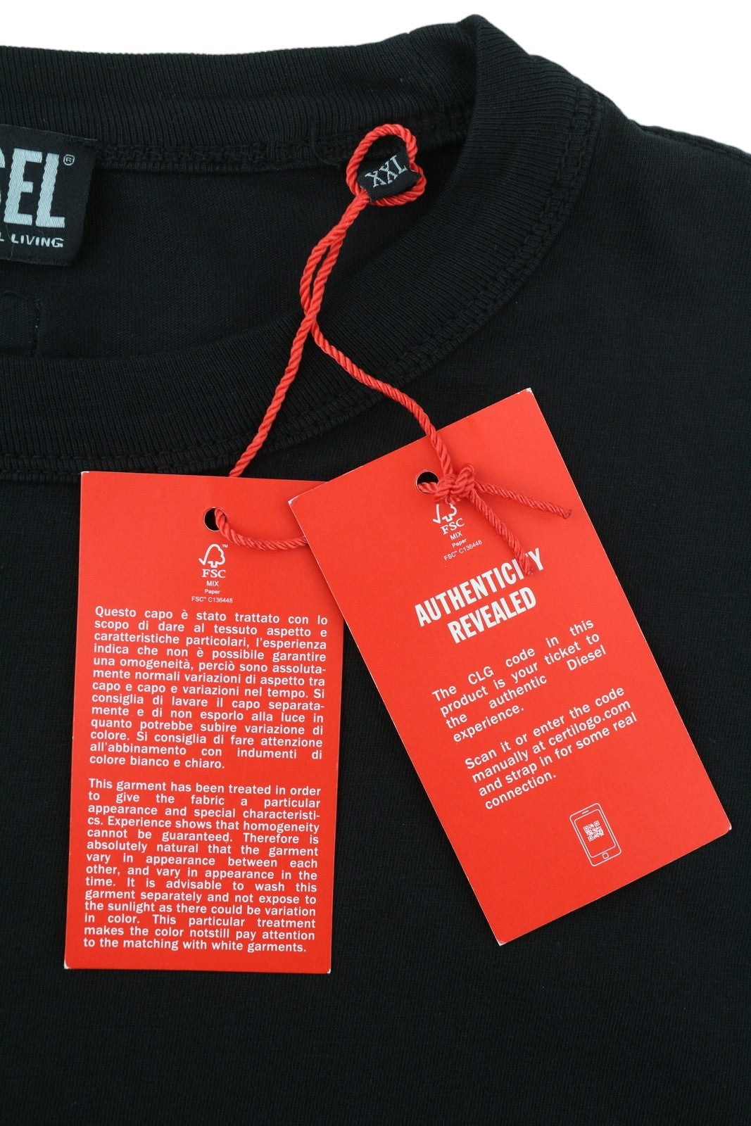 DIESEL T-Shula Men T-Shirt 2XL Black Long Sleeve Crew Neck Stretch Tricot
