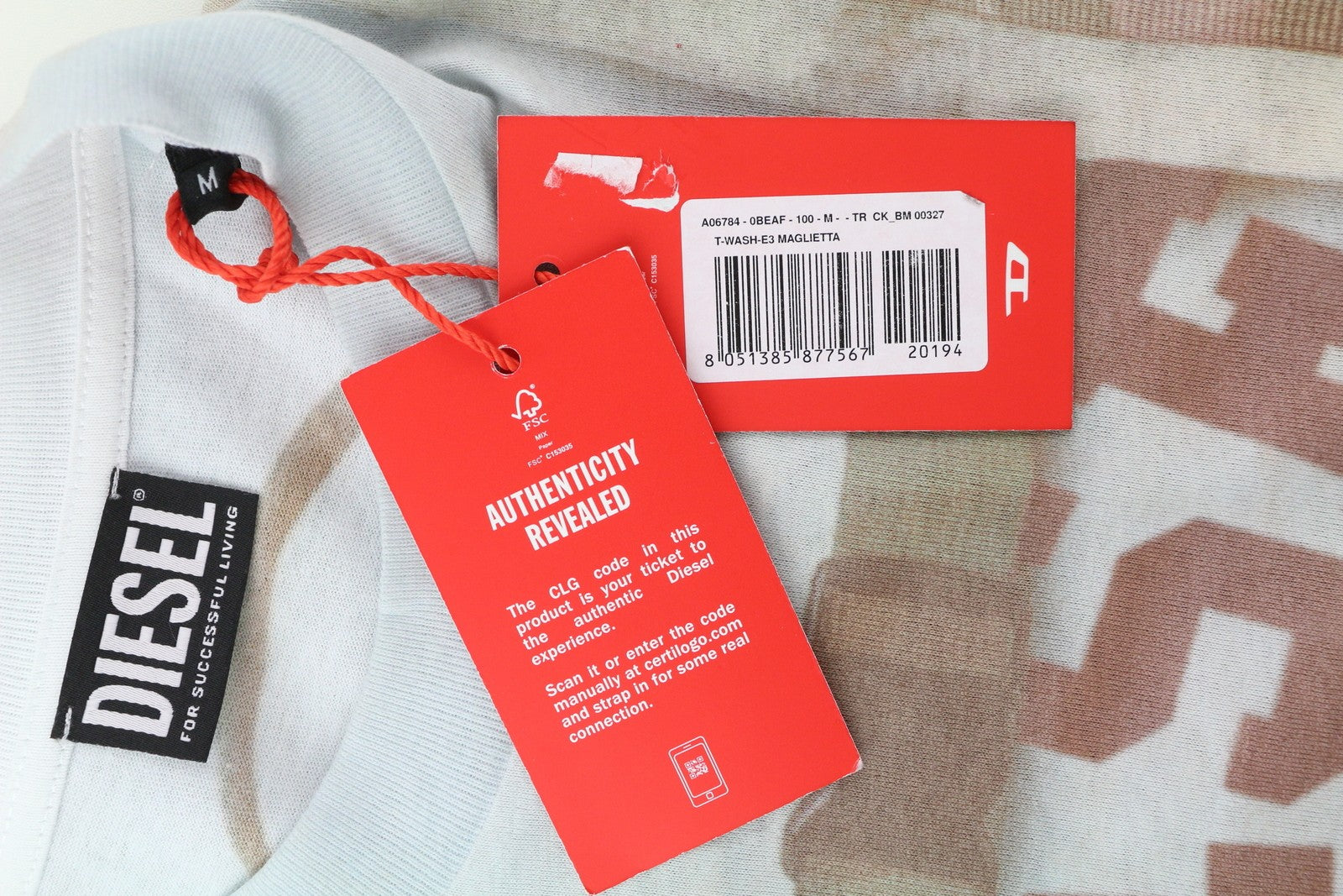 DIESEL T-Wash-E3 Men's T-Shirt M White Crew Collar Stretch Tricot RRP175