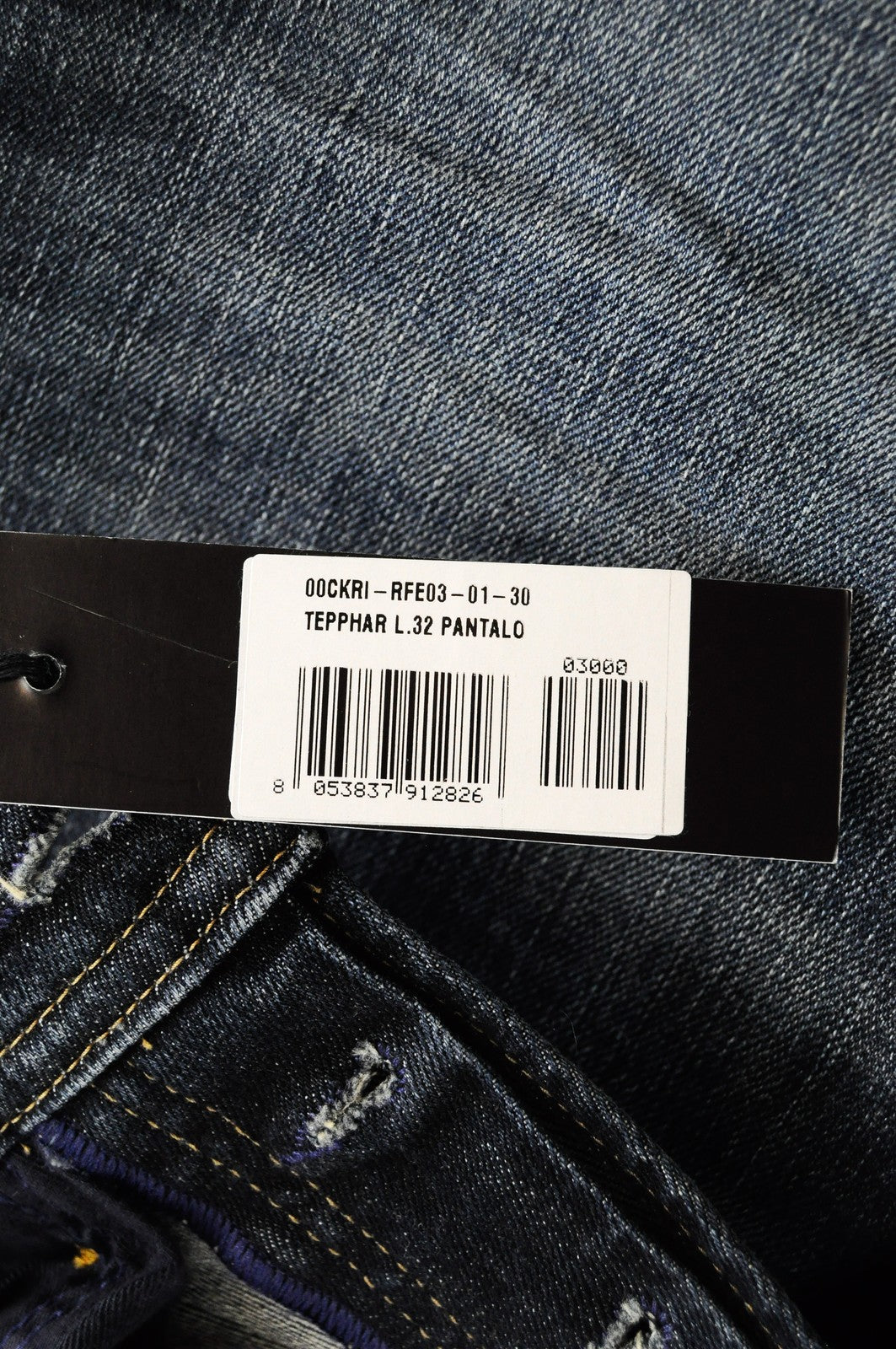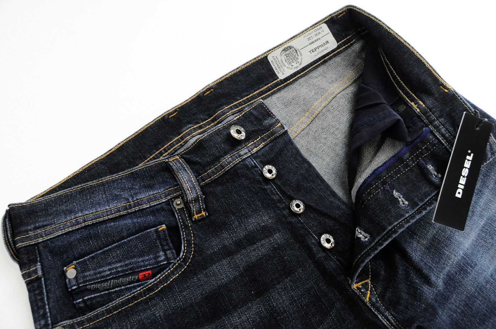 DIESEL Tepphar RFE03 vyriški džinsai W30/L32 Slim morkų medvilnės tamprūs mėlyni