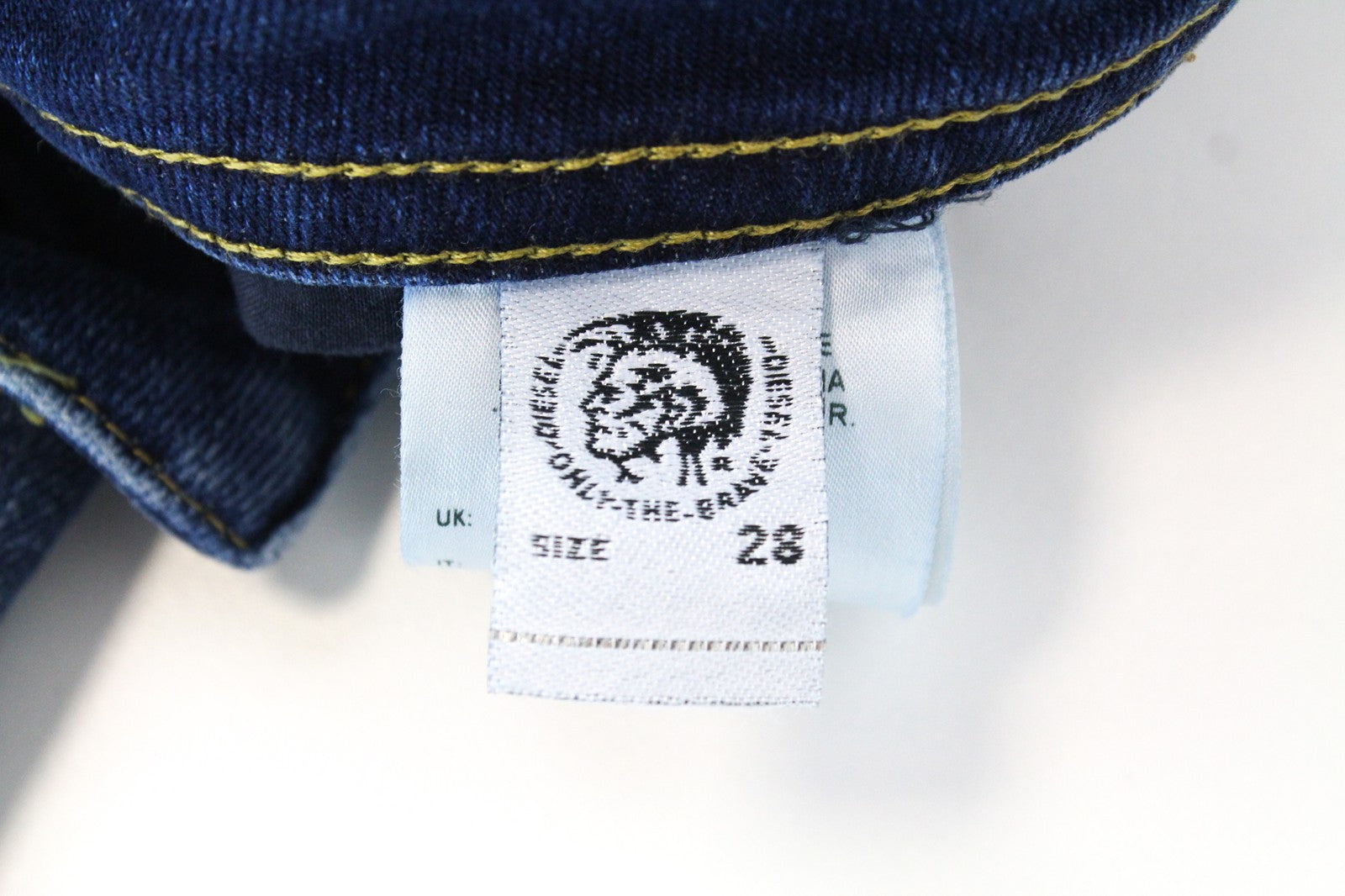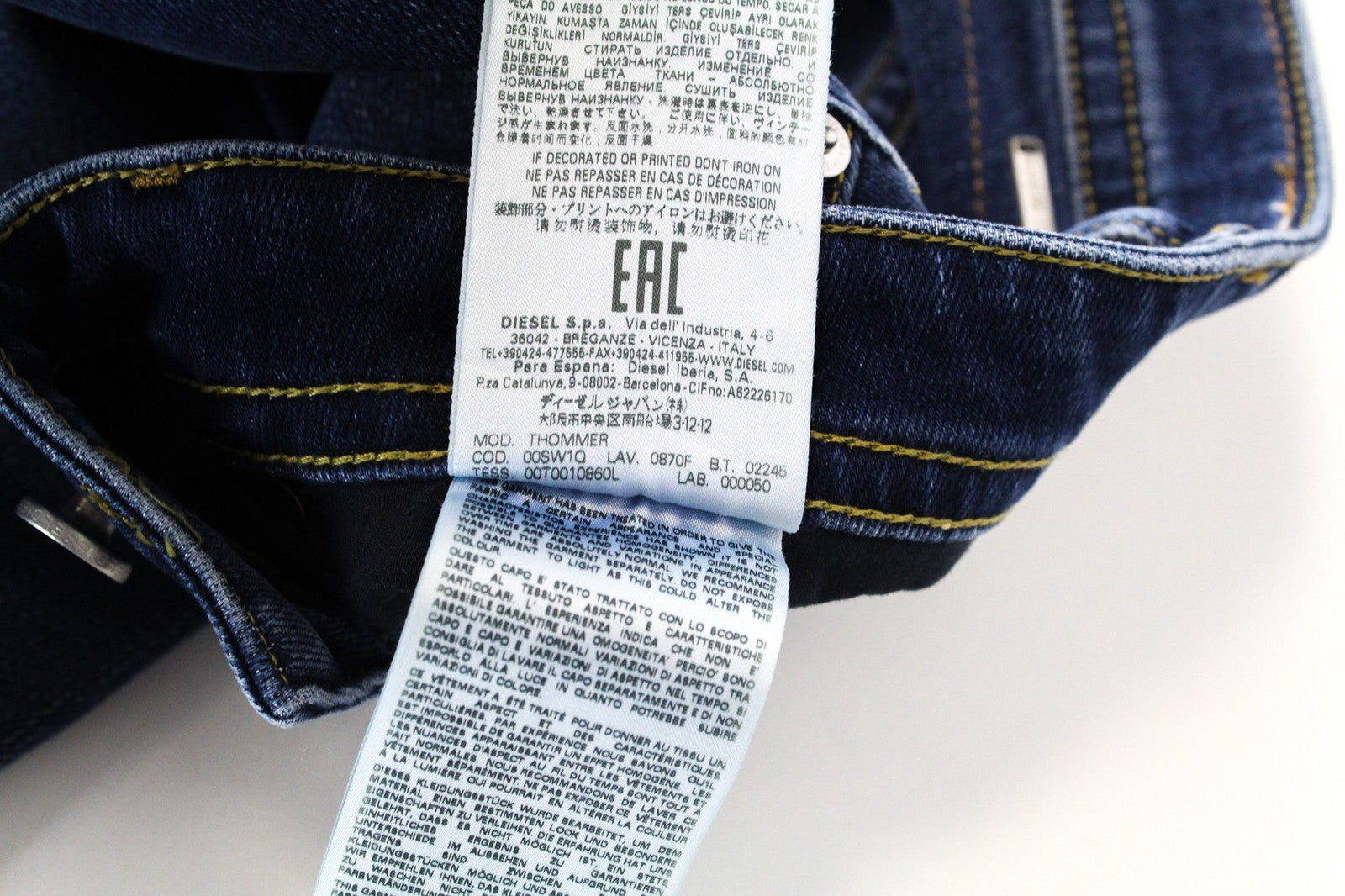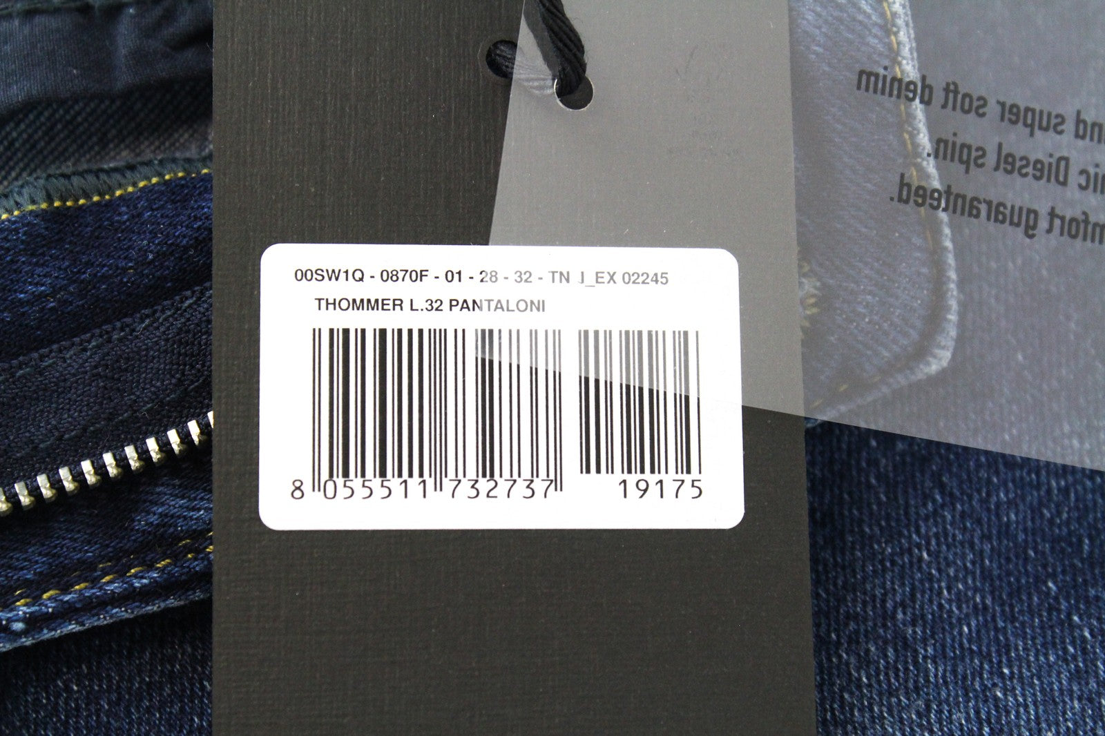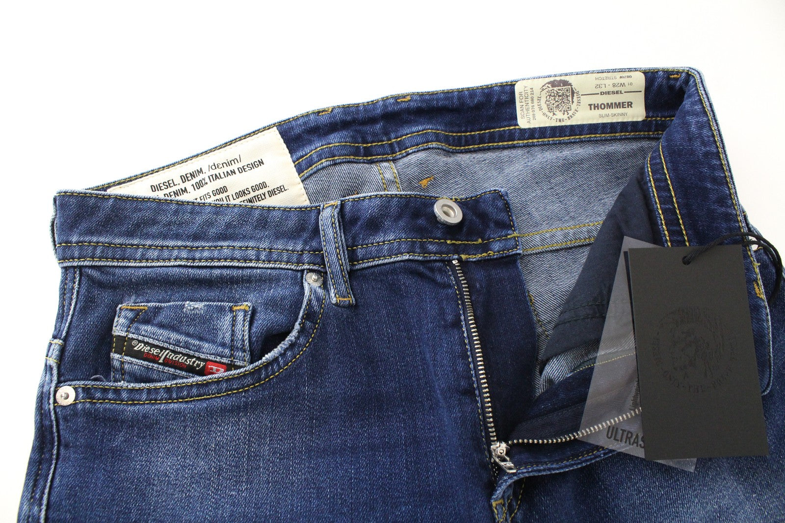 DIESEL Thommer 0870F W28/L32 vyriški džinsai, aptempti, mėlyni, su užtrauktuku ir išblukę.