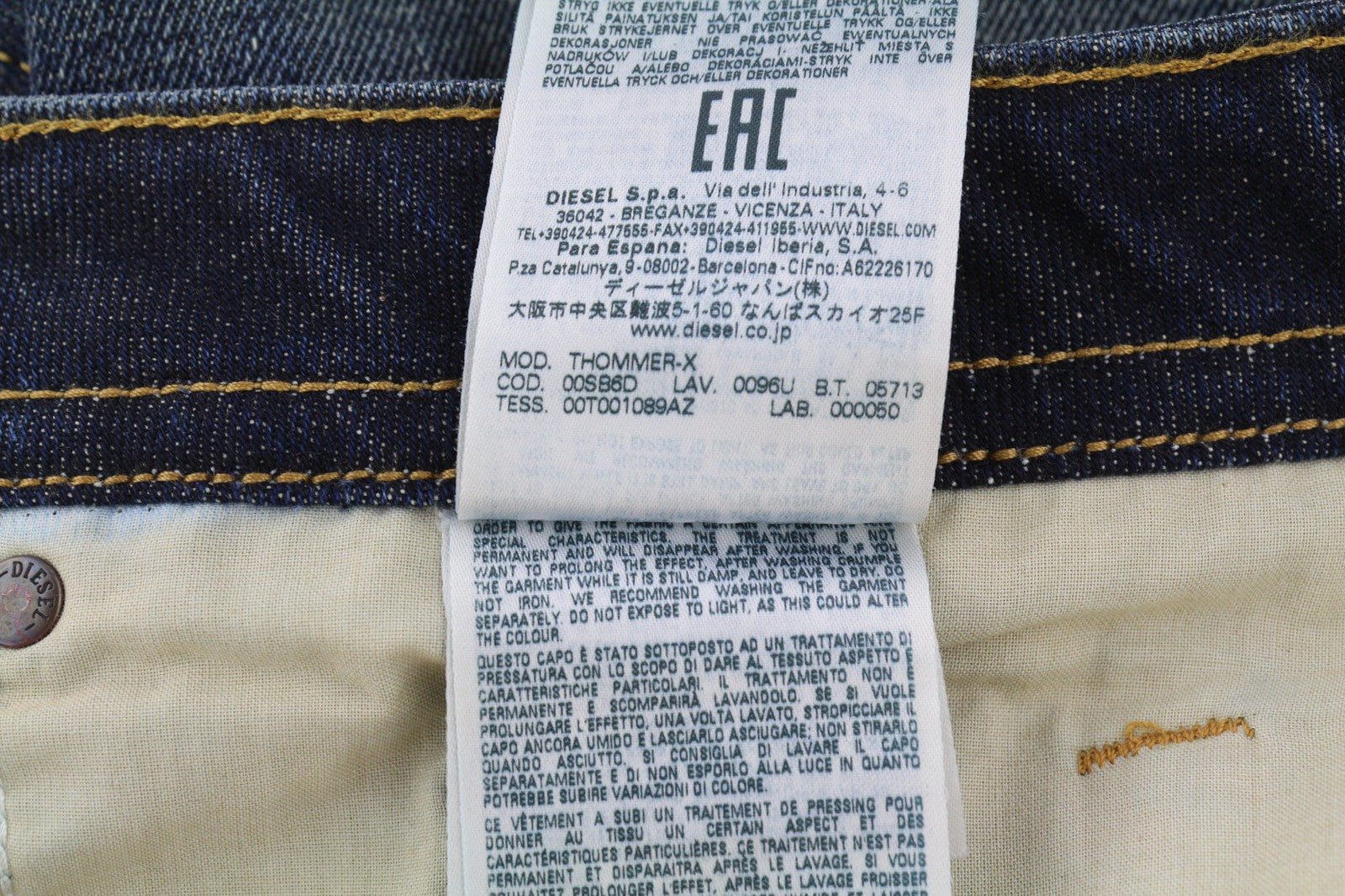 DIESEL Thommer-X 0096U vyriški džinsai W40/L32 tamsiai mėlyni, aptempti, su užtrauktuku