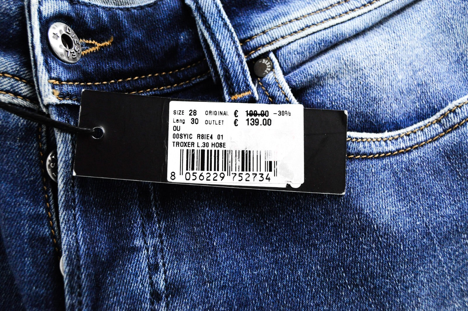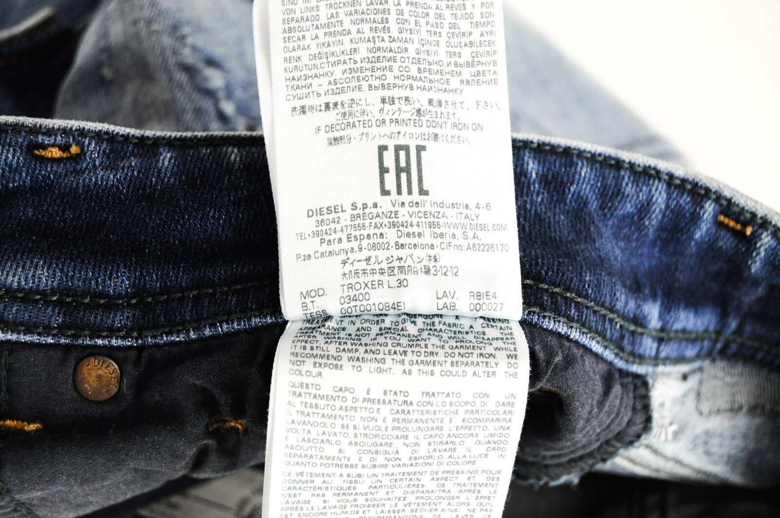 DIESEL Troxer R8IE4 vyriški džinsai W28/L30 tamprūs, ploni, aptempti, mėlyni