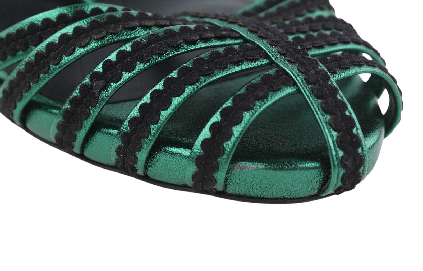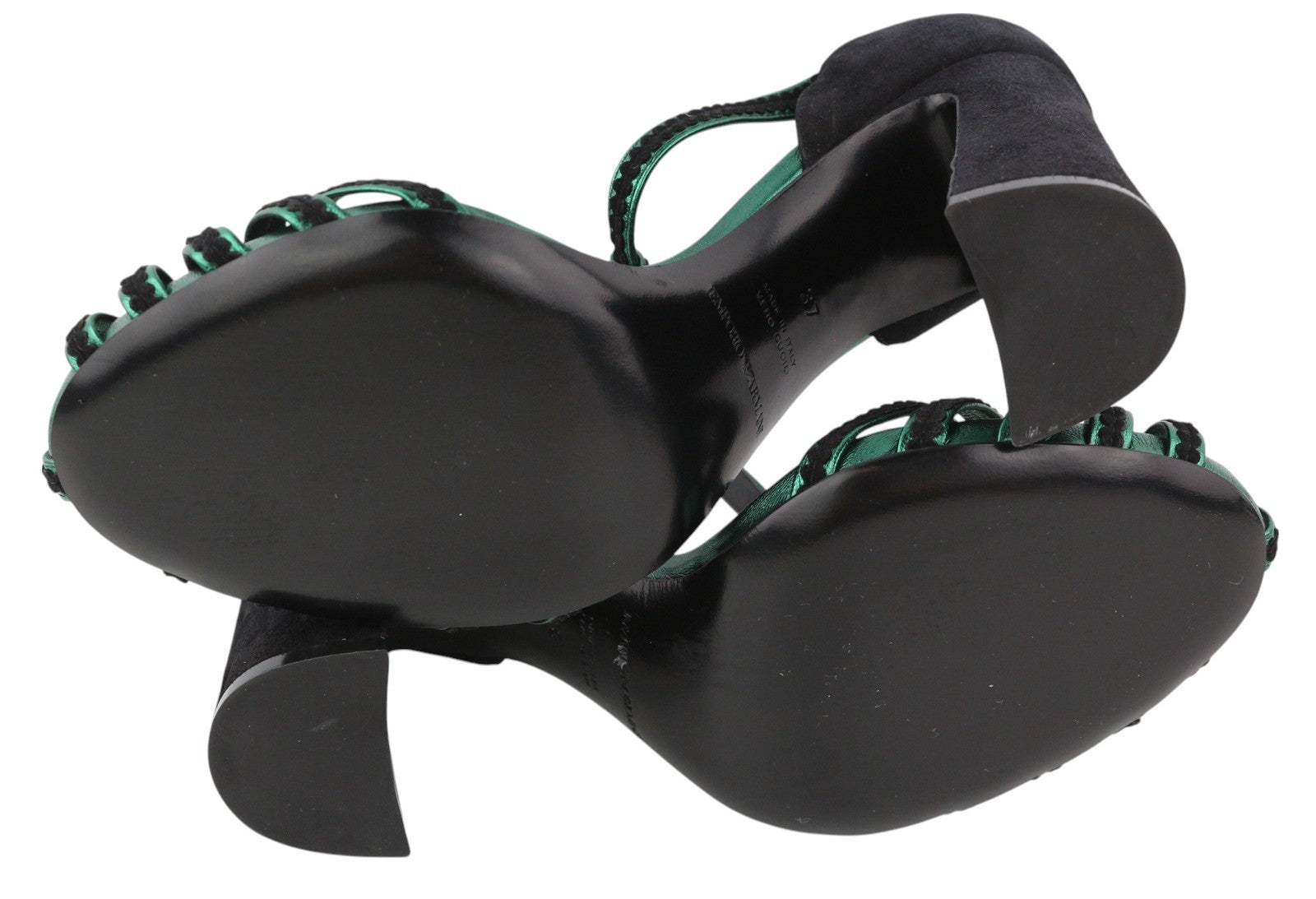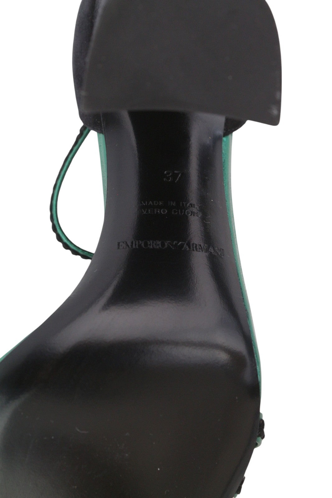 EMPORIO ARMANI Women Heels EU37 Black Suede Strappy Buckle Sandals