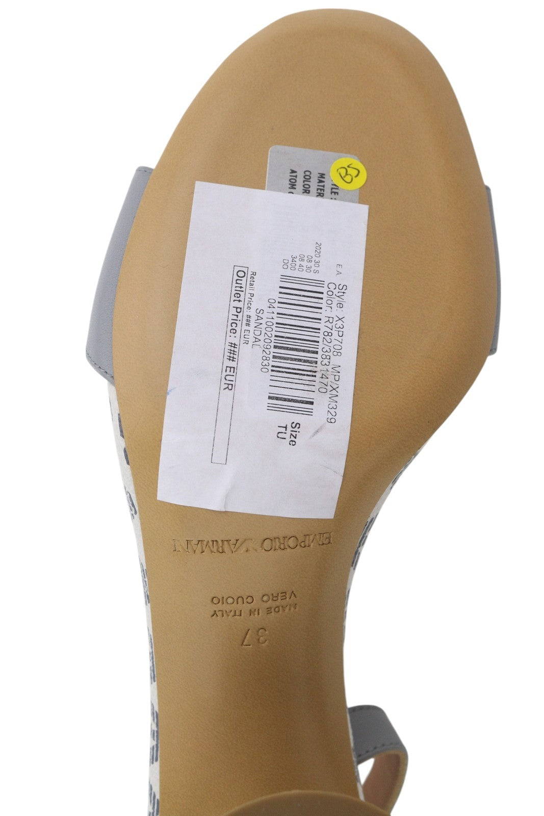 EMPORIO ARMANI X3P708 Women Heels EU37 Grey Leather Logo Print Sandals RRP199